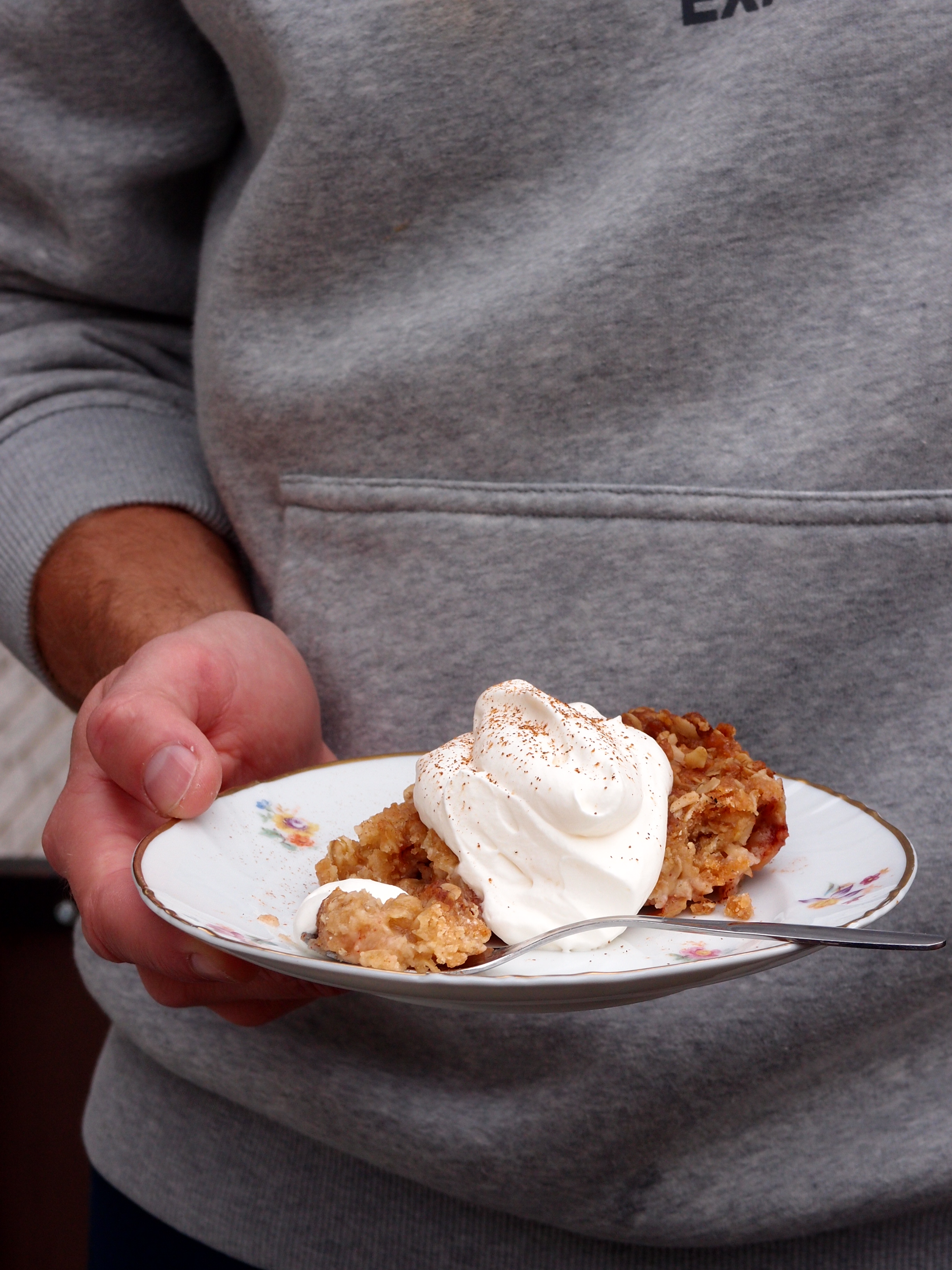 Det blev nästan grädde med paj ser jag nu…men kanske ser ni trots det hur knäckig pajen är på ytan. Kan intyga att den är mycket smarrig av de söta och kryddiga äpplena som gömmer sig på botten.