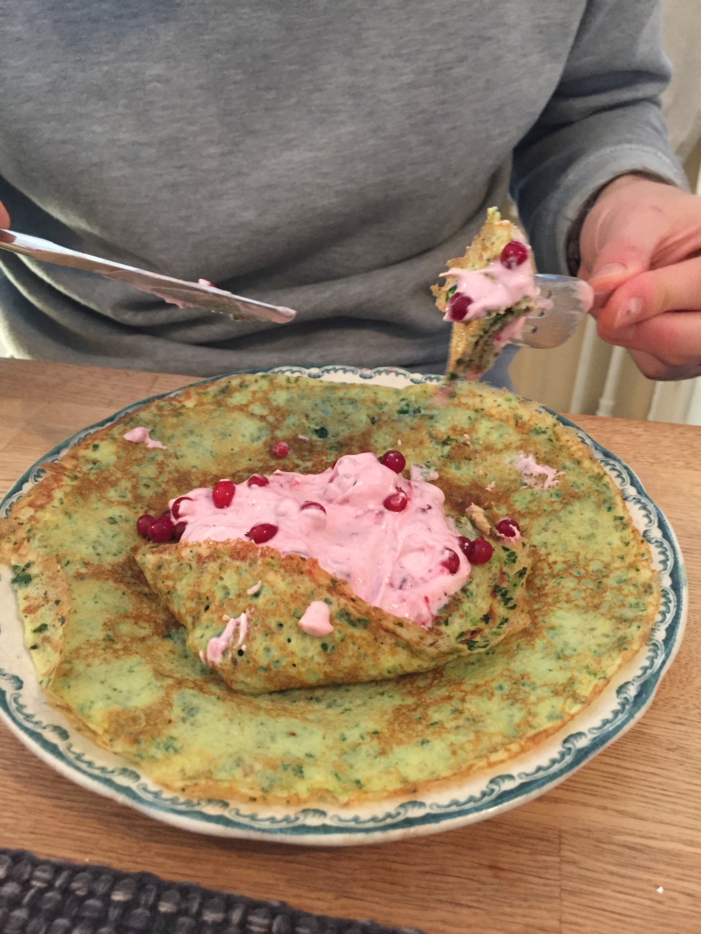 Pavlova med rabarber- och hallonkompott samt lakritskinuski