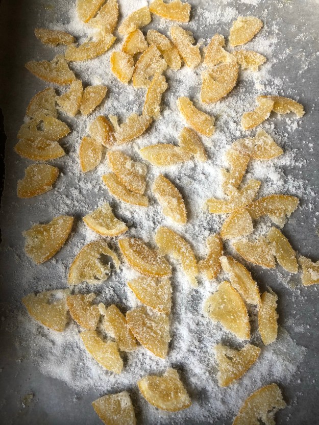 Ända tills nu har jag inte fattat poängen med att göra kanderad citron till desserter och bakverk. I recept där det ingått som garnering har jag alltid hoppat över det. Men vet ni va? Det är himla gott, smakar lite som hemlagad marmelad och är ett perfekt sätt att ta tillvara på citroner som kanske blivit liggande i fruktskålen. Provade även med lime men det blev inte riktigt lika gott. Apelsin kan jag tänka mig att blir vackert, men också sötare.