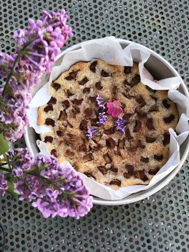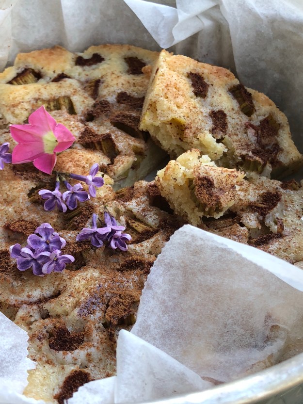 Jag pudrade ytan med lite kanel till de här bilderna så därför är rabarberbitarna så bruna.
