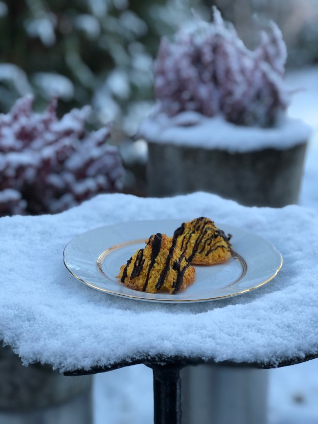 Juliga kokostoppar med tydlig smak av saffran. Apelsin och choklad känns som självklara smak-kompisar. De är frasigt tuggiga samtidigt som de är saftiga och naturligt glutenfria dessutom.