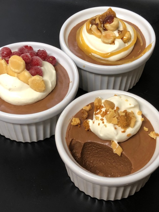 Fyll skalet med krämen, kyl några timmar och toppa sedan med vispad vaniljgrädde och gärna chokladflisor med kaffesmak.