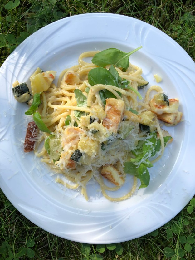 Det här åt vi till middag när vi behövde använda lite av all zucchini som vi skördat i sommar! Smarrig vardagspasta på det vi hade hemma.