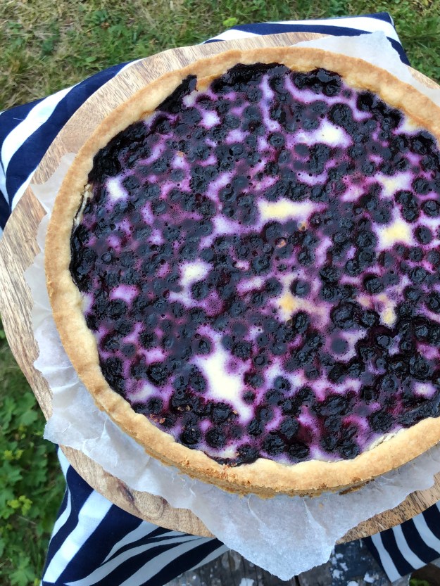 Den här kompotten blir riktigt syrlig och uppfriskande i den annars ganska söta tårtan.
