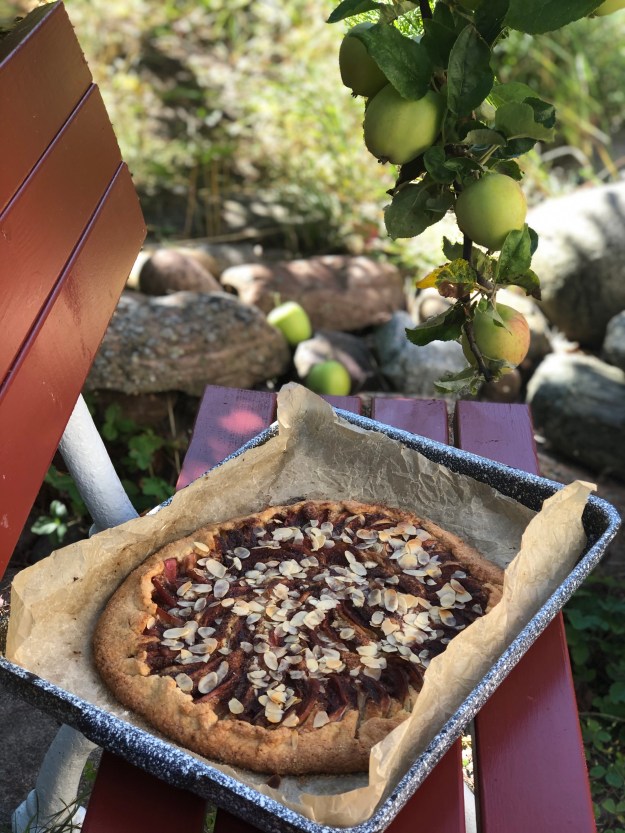 Idag bjuder jag på en rustikare variant av äppelpaj, en galette – som bakas utan pajform. Den uppvikta degkanten ger ett hemlagat intryck.