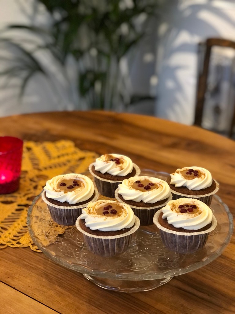 Pepparkakscupcakes med lingonkola & luftig gräddfrosting