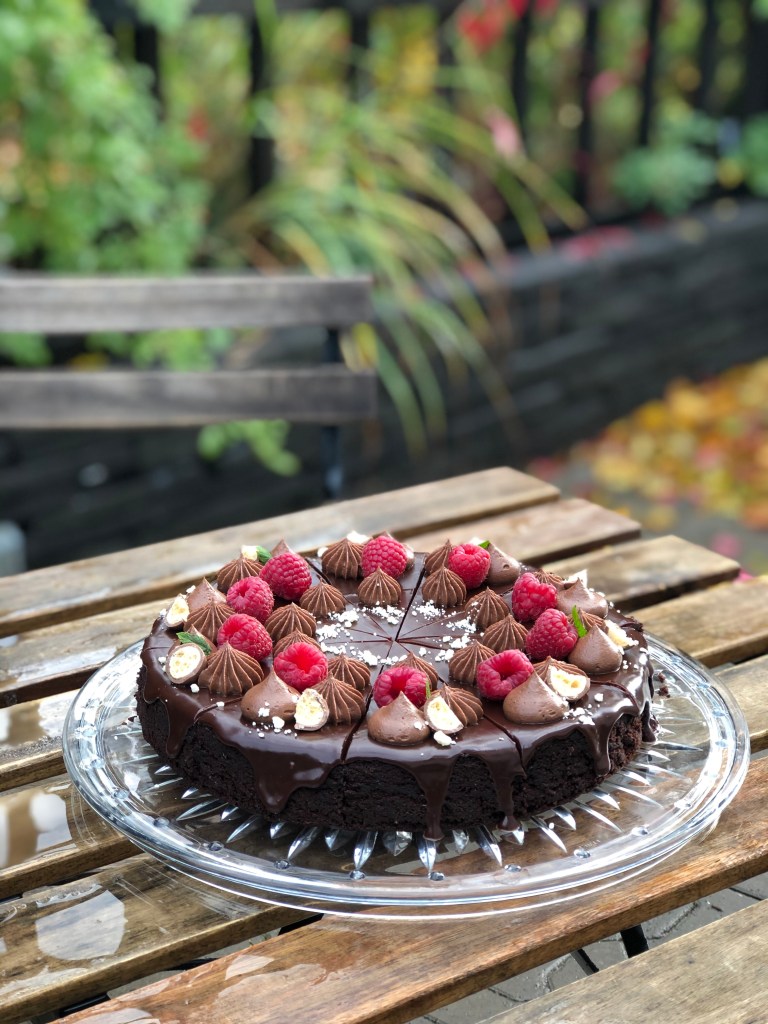 -En annan favoritkaka som är både ljuvligt chokladig och tacksam att garnera. Med lite pepparmyntsolja i ganachen så blir den en smarrig mintchokladtårta.