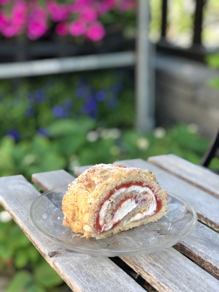 Det här receptet på rulltårta är lite speciellt för det innehåller ”inbakad” rabarber. Dessutom är den fylld med rabarber- och jordgubbssylt samt en färskostkräm…. ja ni hör ju hur god den är!