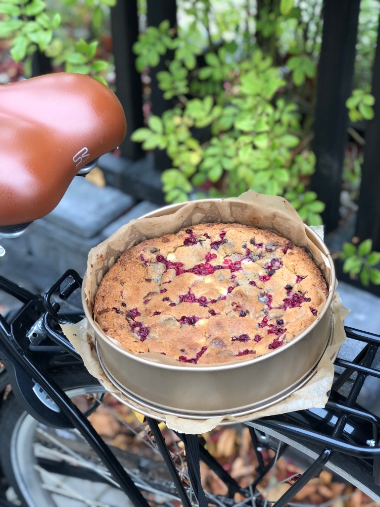 En helt vanlig kladdkaka blir enkelt halloweenfin med ett spindelmönster av smält vit choklad.