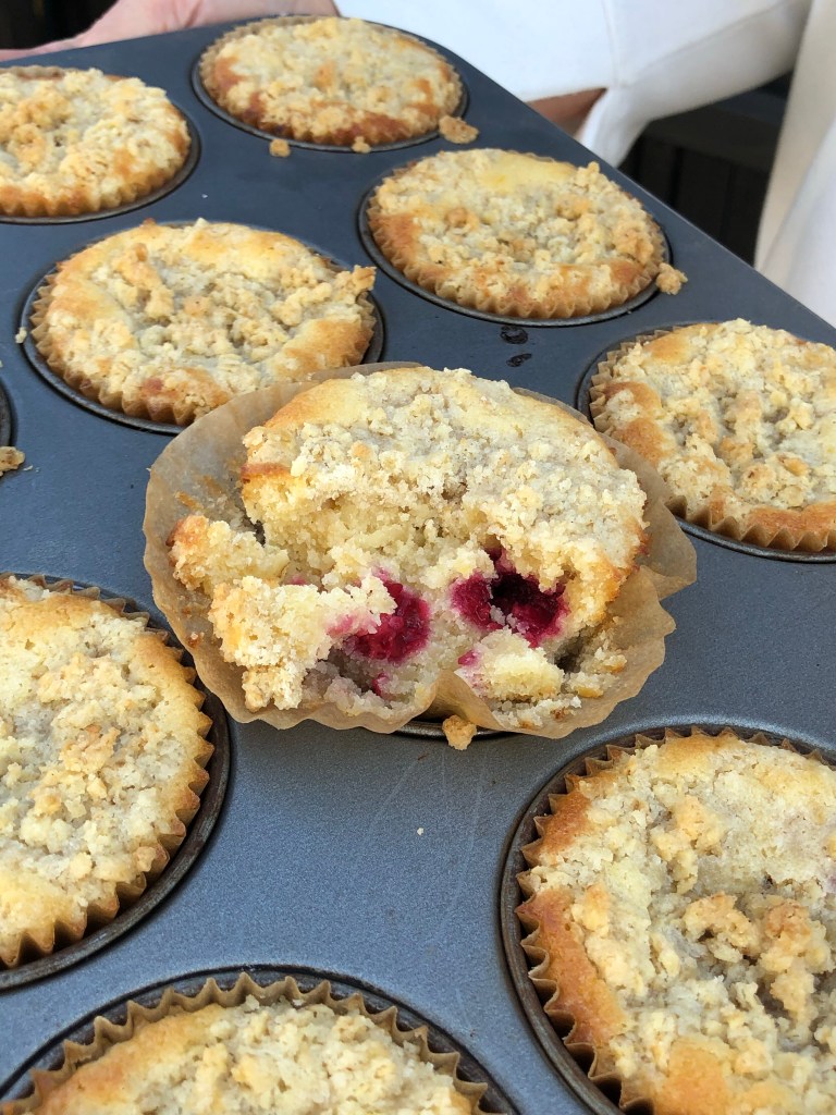 Glutenfria citronkladdmuffins med hallon och crumble