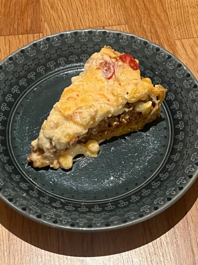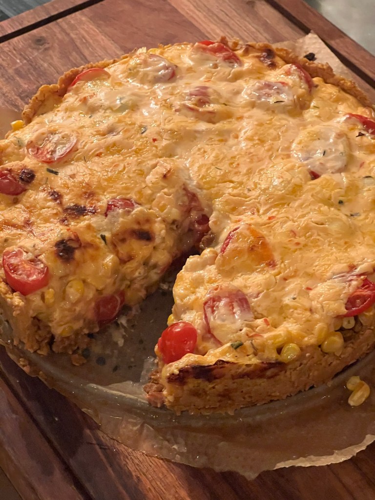 Det som utmärker dagens recept är pajskalet som är gjort av nachochips! Himla skönt att den är naturligt glutenfri så att jag också kan njuta av samma paj och inte behövde göra en skild botten åt mig. (Jag äter fortfarande glutenfritt till stor del, men inte nitiskt noggrant).