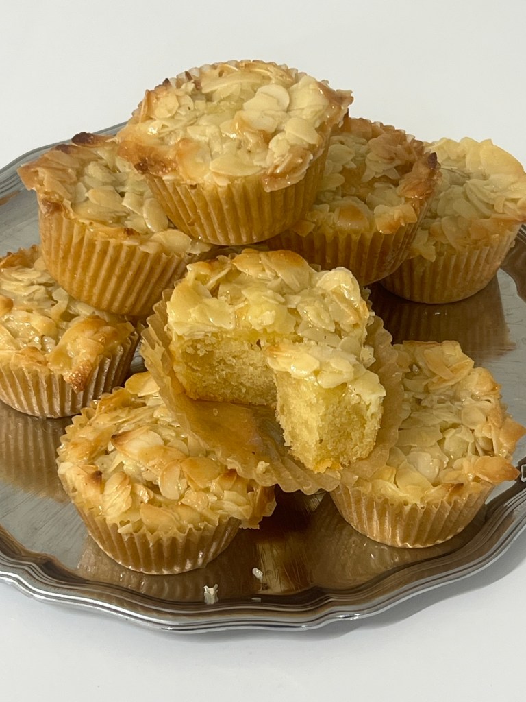 Smält smöret och blanda ner allt utom mandeln. Värm upp under omrörning tills den tjocknar. Vänd mer mandeln. Fördela toscan på muffinsarna och grädda ytterligare 10-12 minuter el tills de har lite färg. Funkar fint att frysa ner.