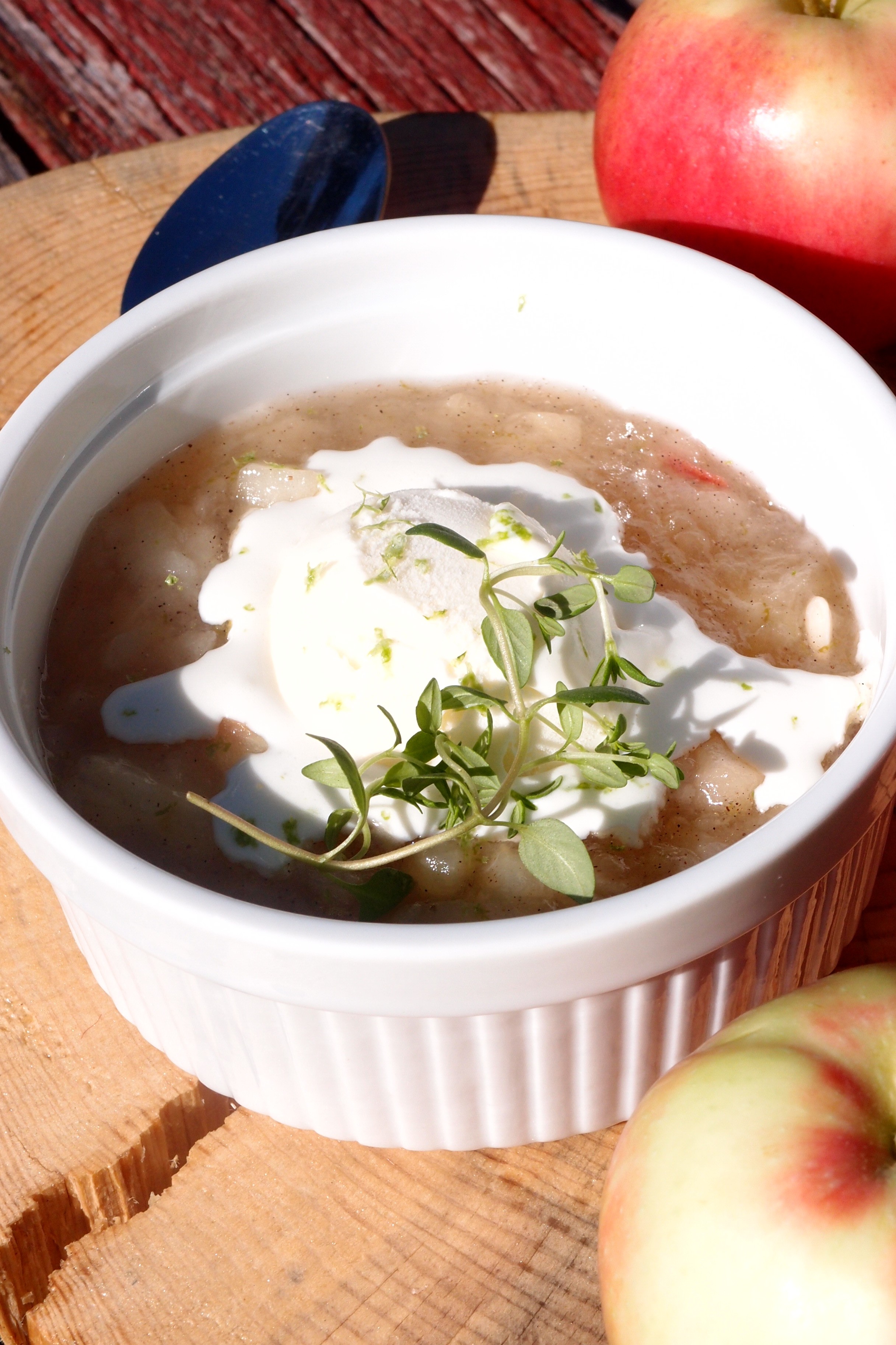 Älskade äppeltider! Äntligen finns det mängder av krispiga och syrliga åländska äpplen att sätta tänderna i. Varm äppelkräm med iskall gräddglass är löjligt enkelt att göra men smakar helt fantastiskt. Jag har smaksatt min kräm med lime och vanilj, det ger en härlig rund ton med friskhet. Prova det här!