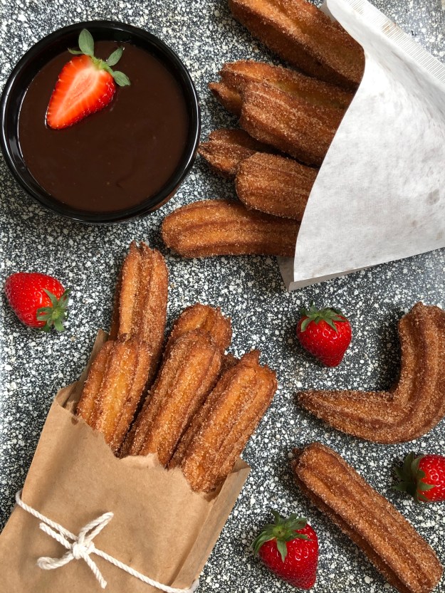 Churros är ett spanskt friterat bakverk som påminner en del om våra munkar men de är inte lika tidskrävande. Perfekt att laga till Valborg och dippa i en god fudgesås.