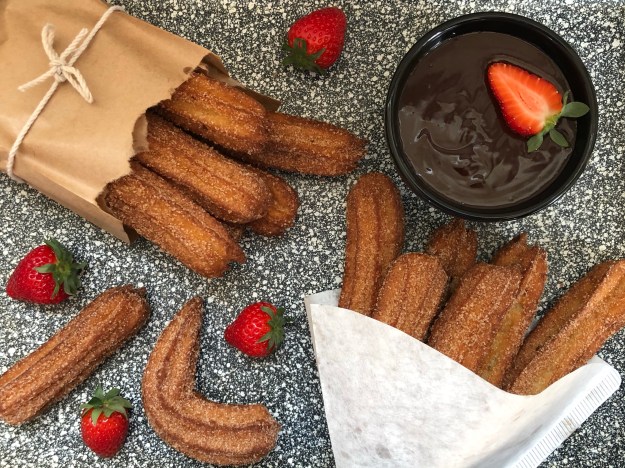 Churros kan även doppas i smält choklad, kinuskisås, chokladsås, fluff el uppvärmd nutella.