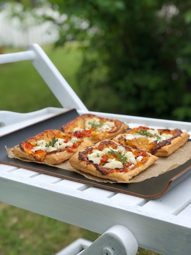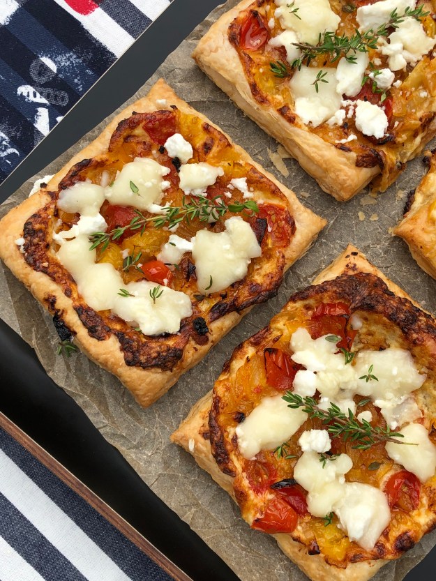 Frasig smördeg, solmogna tomater och getost är fantastiskt gott ihop. Perfekt som tilltugg el ”dagen efter”, så att säga.