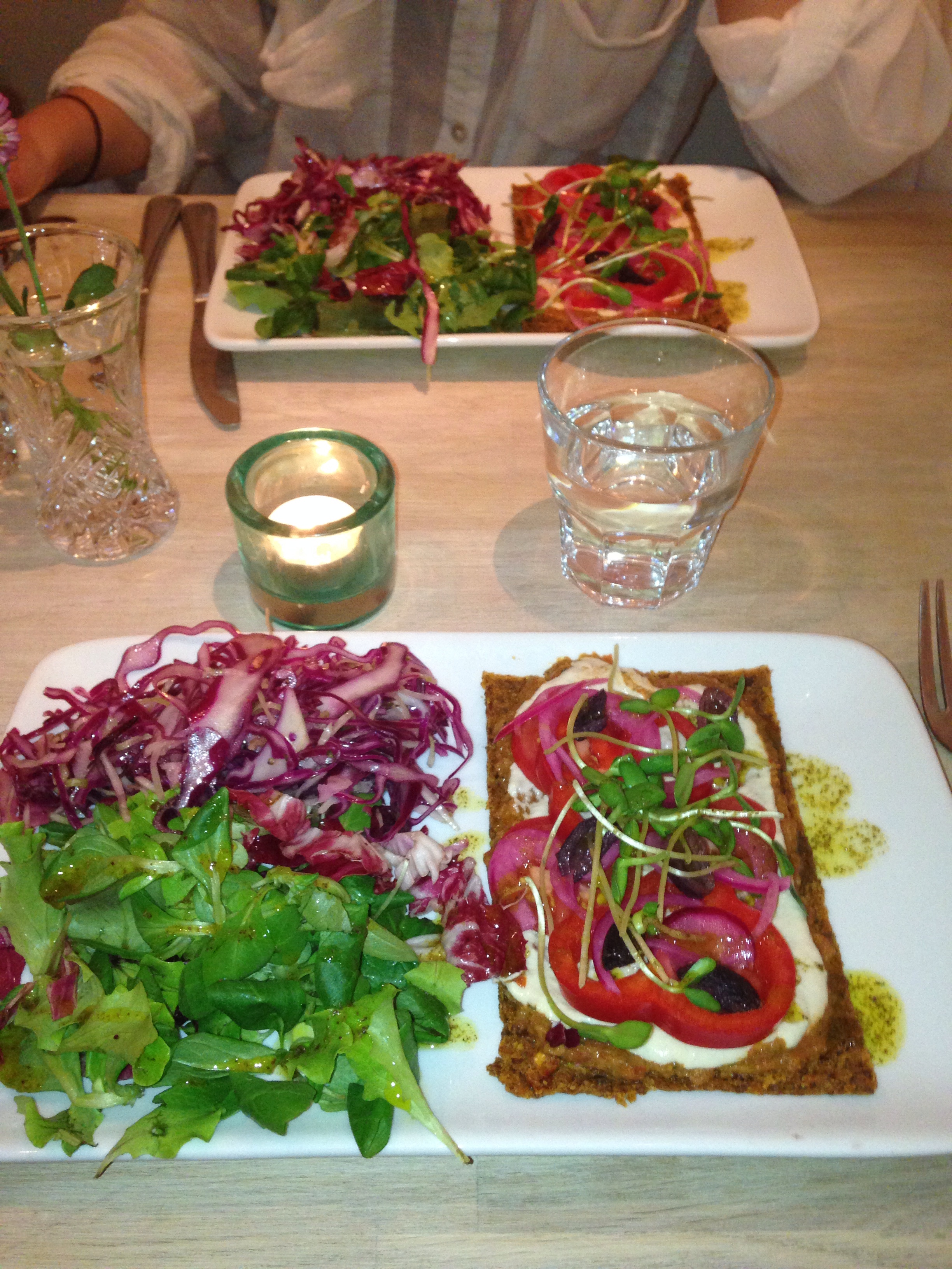 På Rawfoodbaren (Viktoriagatan 18 i Göteborg) finns massor av godsaker att välja mellan. Vi delade på en smarrig  solrospizza…