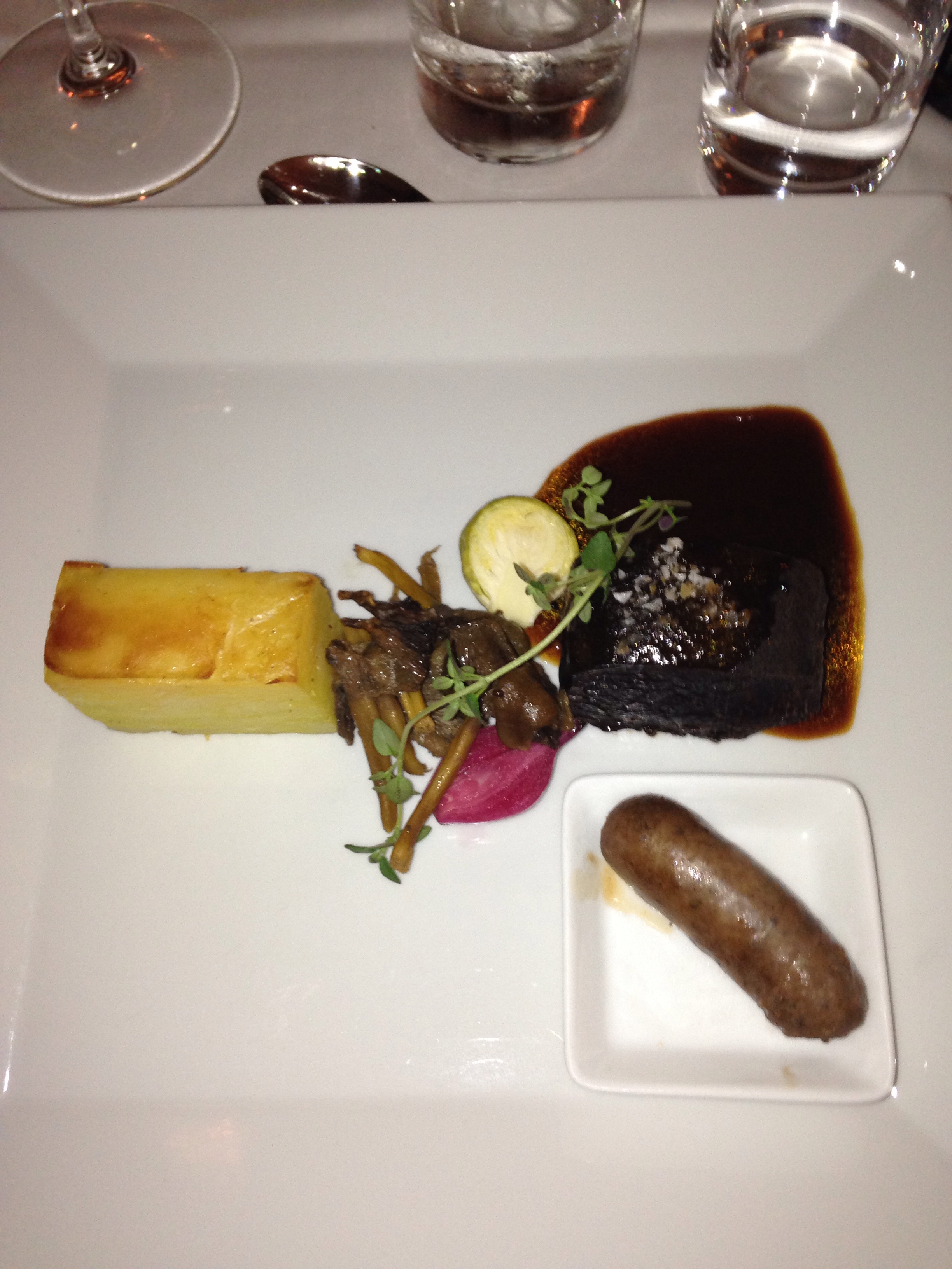 Hjort (min serverades gravidvänlig, d.v.s. well done). Rödvinssås och kantareller var återkommande bland rätterna. Inte mig emot dock – himla gott! Och nej, rödvinssåsen valde jag inte bort. Om alkoholen kokar bort eller inte verkar det finnas delade meningar kring men det är inget jag äter mycket eller ofta av.