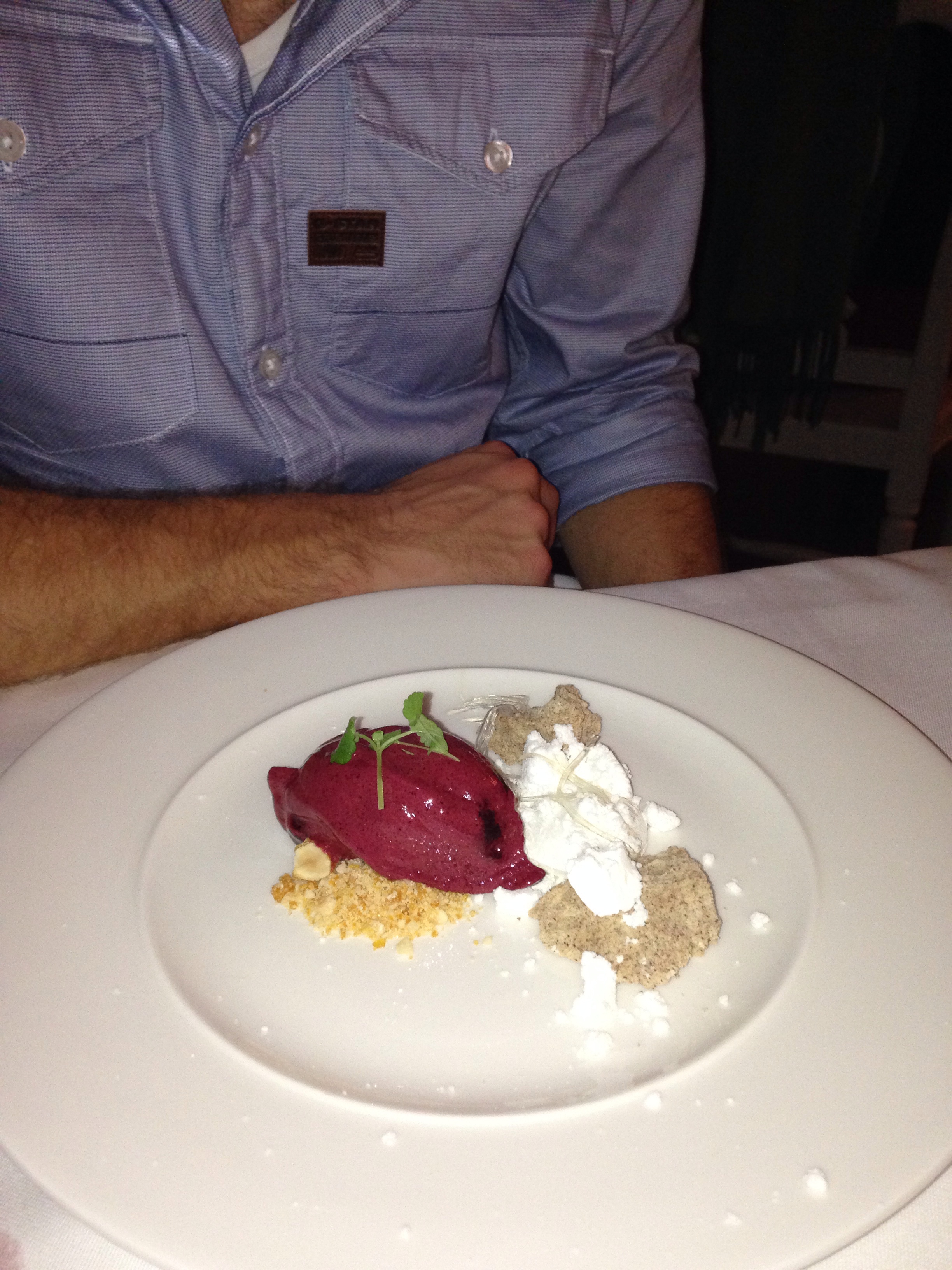 Blåbär… Väldigt god och smakrik glass men i övrigt imponerade inte desserten.