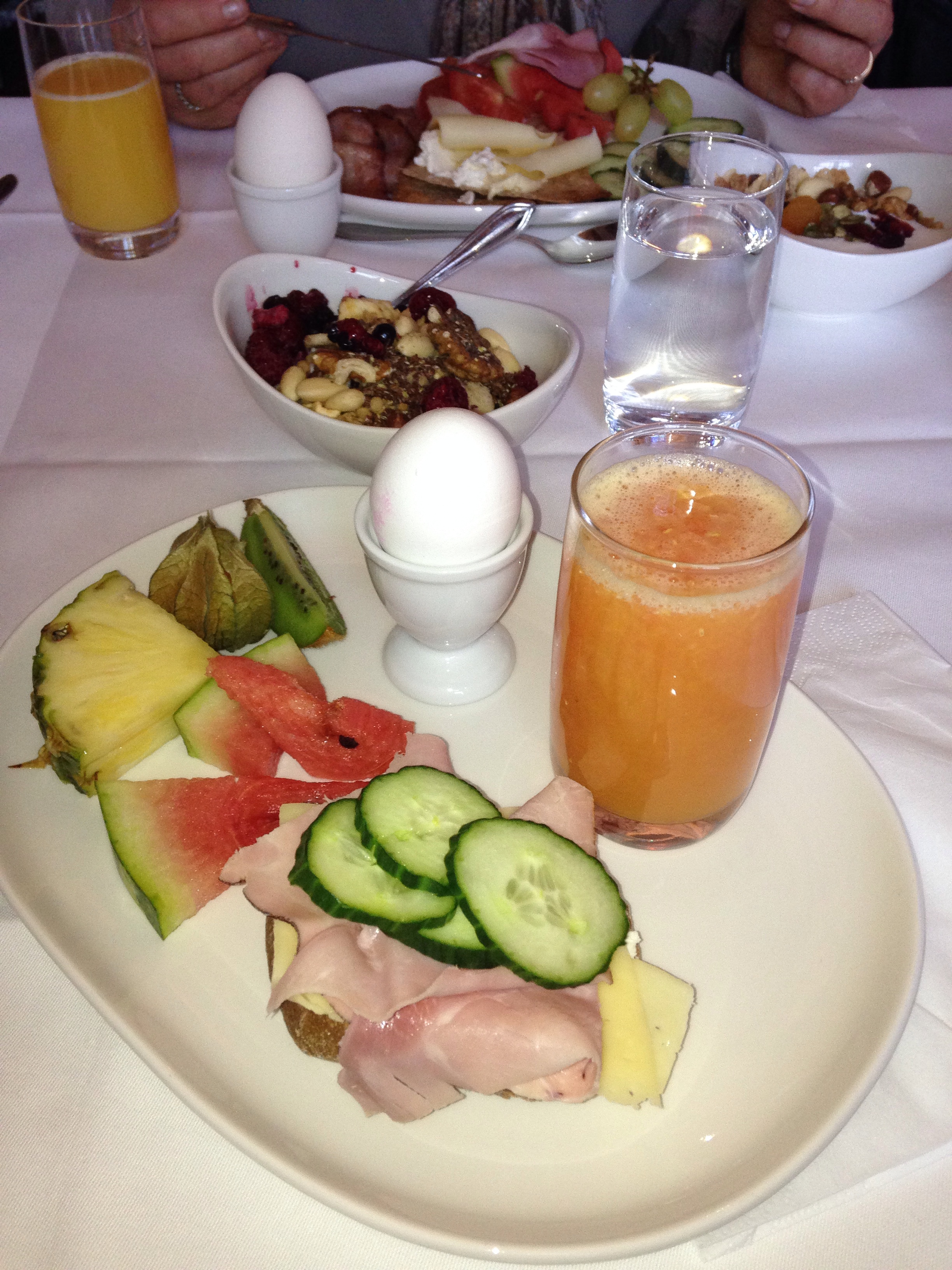 Vi var knappast hungriga vid frukosten men som tur var serverades den fram till 11 så vi kunde sova ut och ladda inför den sista måltiden.