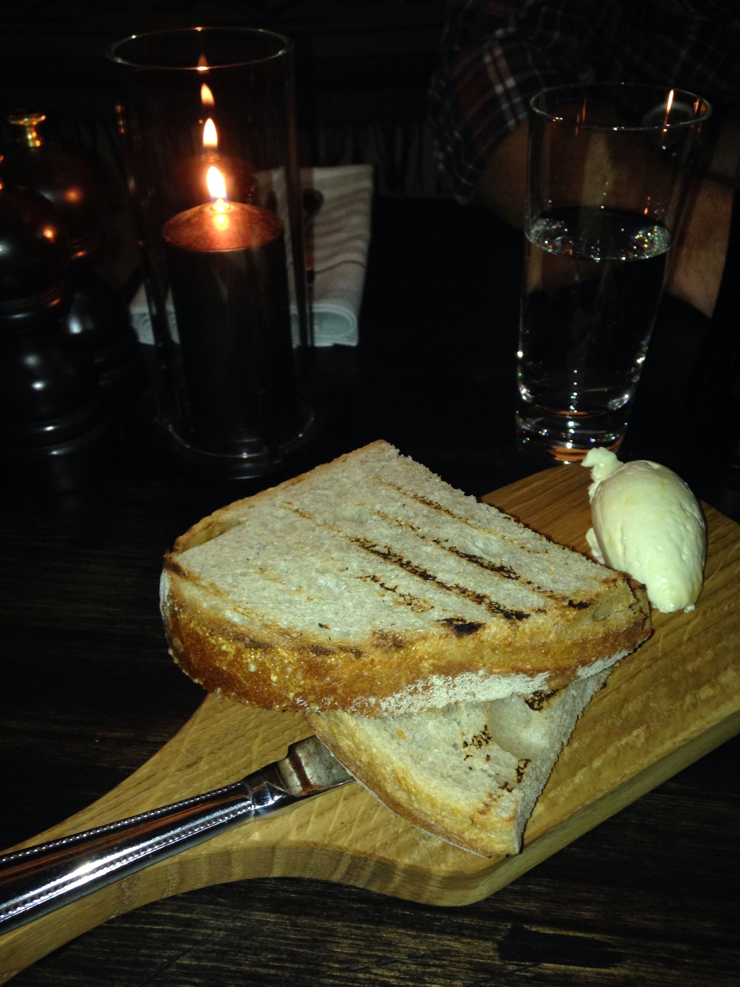 Den andra rätten vi beställde motsvarade inte alls förväntningarna. Det var rostat surdegsbröd med någon slags ”gris-spread” som man själv fick breda på mackan tillsammans med senap. Nja, inte min typ av rätt helt enkelt. Men visst, ett kul sätt att servera en macka på. Där ser man vad fel val i menyn gör för hela upplevelsen, kanske något annat från menyn hade fått mig helt blown away! Plus för mysig pub-miljö där man satt och letade reda på alla grisar i inredningen men minus för maten som inte riktigt motsvarade förväntningarna.