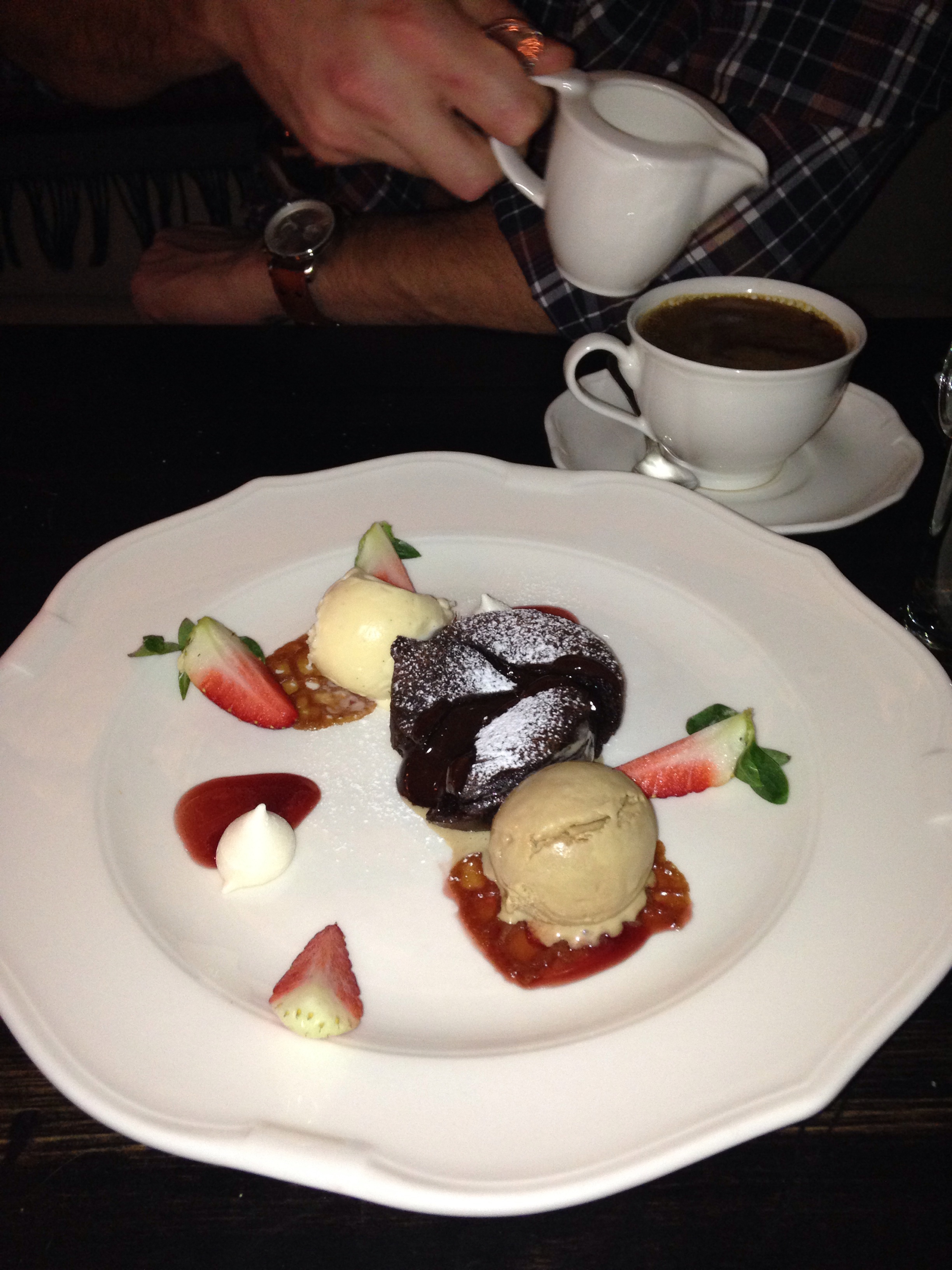 Vi var ju också tvungna att dela lite på en dessert och det lyckas ju alltid slinka ner trots att man är mätt. Konstigt va? Säkert inget ni känner igen. 🙂 Varm päronpaj flamberades med cognac och svalkades med glass. Delikat!