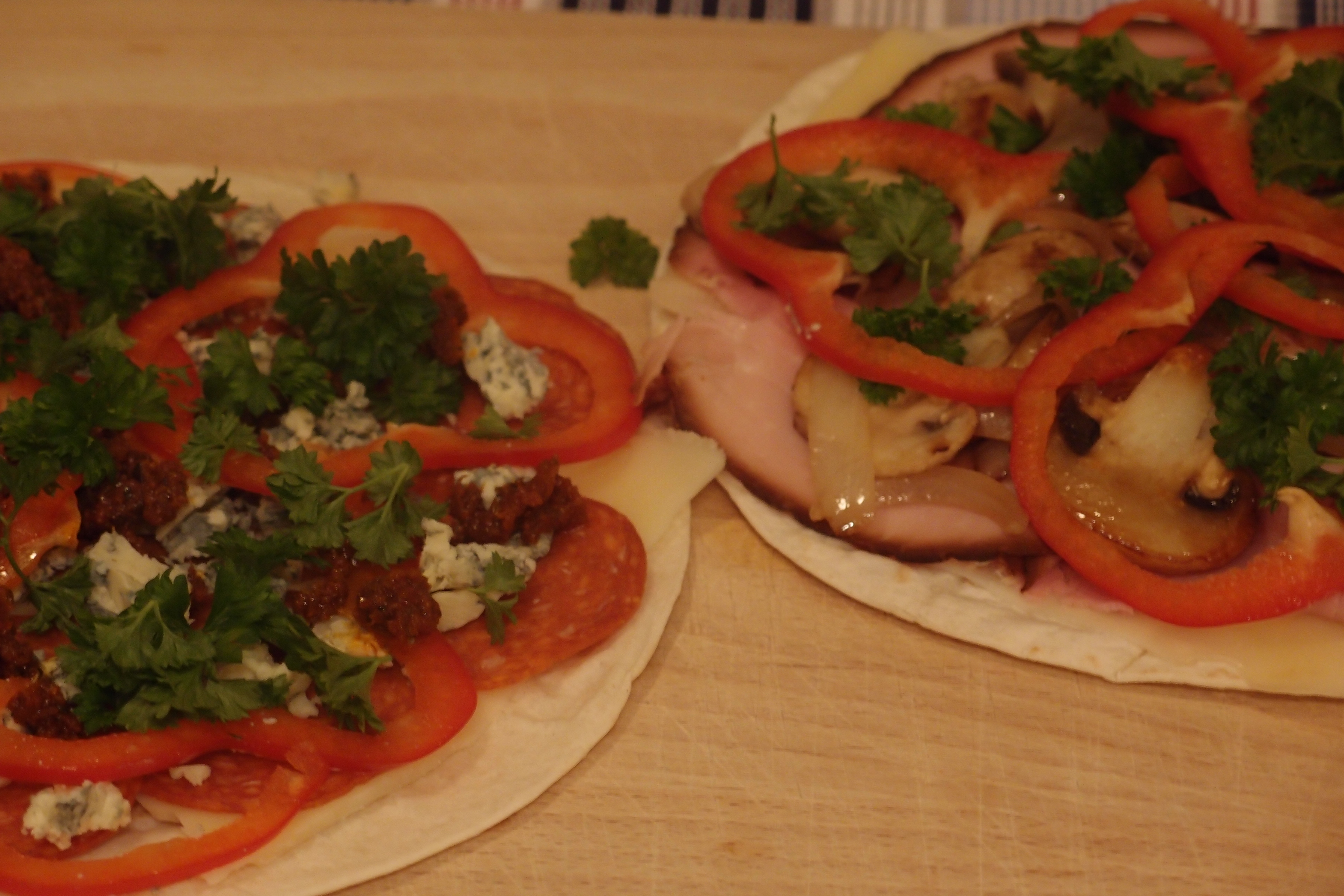 Jag gjorde en krämig liten gömma i dem på färskost (typ Philadephia), finhackad purjolök och fryst basilika.