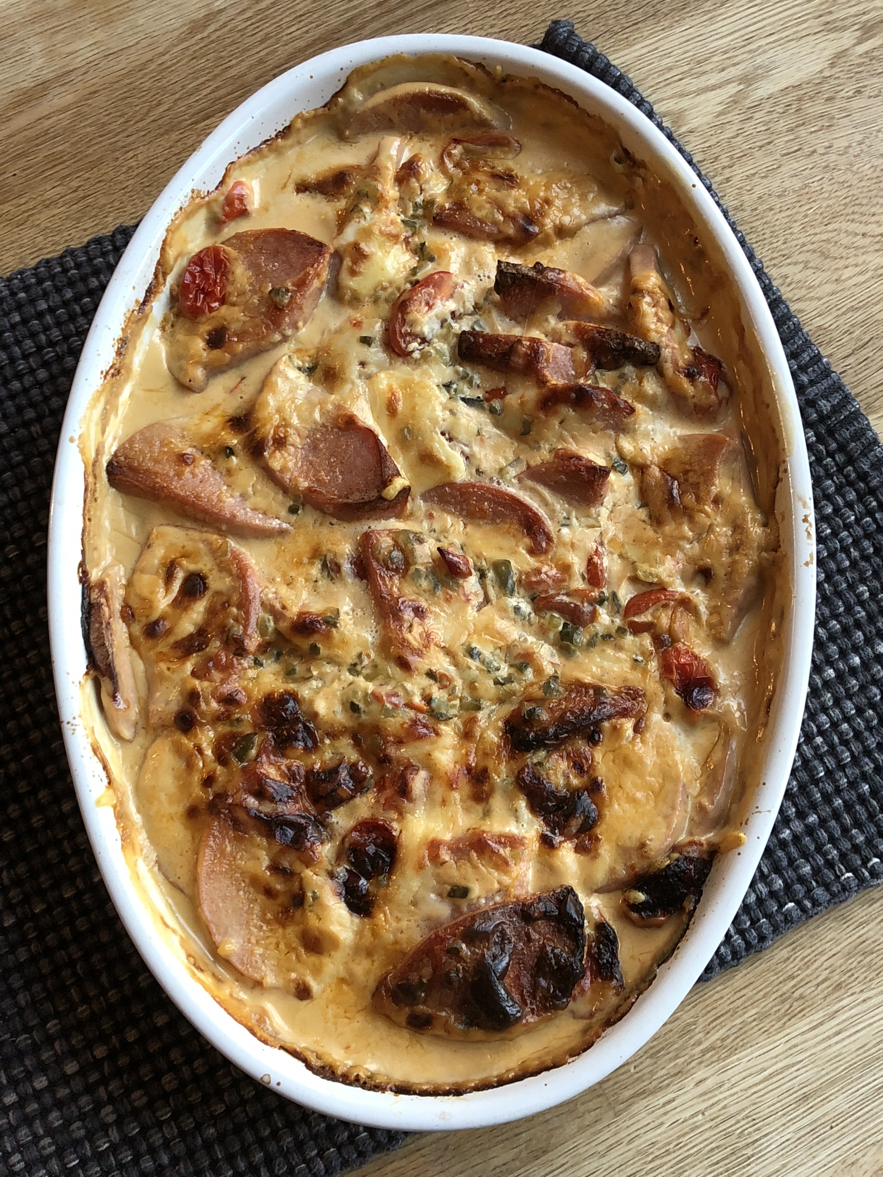 Gräddig och het tomatsås med generösa mängder bacon. Mums!