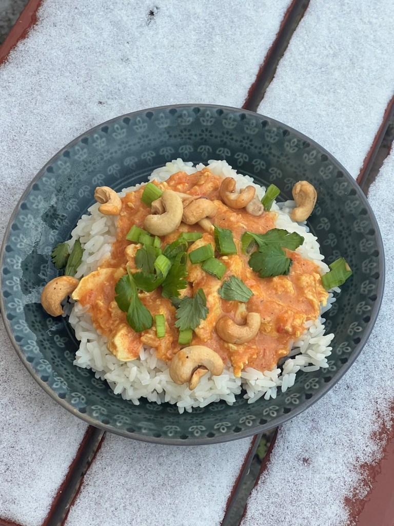 Den här rätten påminner en del om indisk butter chicken som jag också har här på bloggen så om du gillar den så kommer du nog gilla den här också.