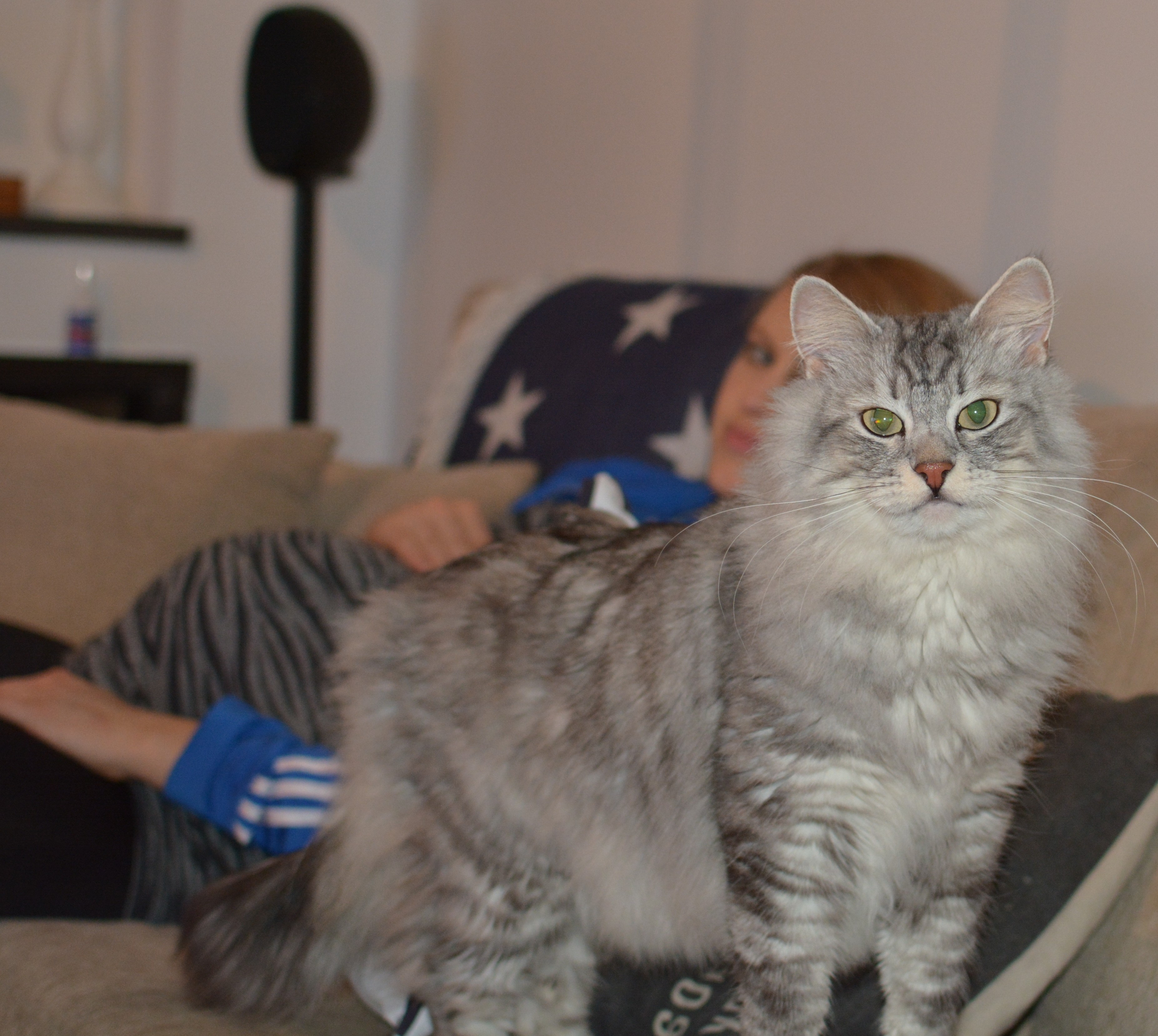 Laddar inför ett träningspass med lite soffmys… Kokos är världens myskille som älskar att krypa högt upp på kulan och bli kliad under hakan. 🙂 Här är han nog på väg till Dajas famn, han knatar alltid fram och tillbaka mellan oss… ♡