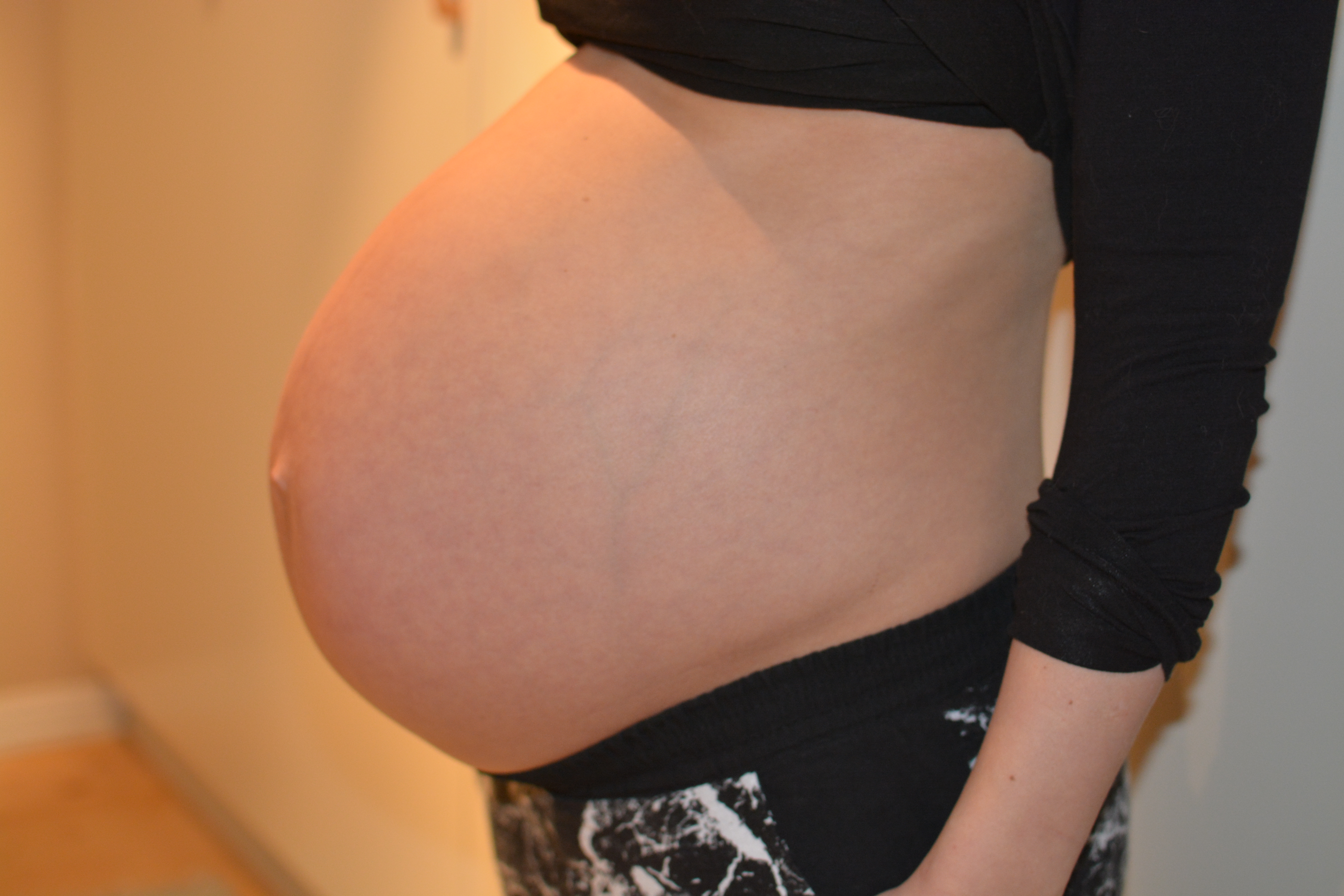 Putar på bra nu! Storleksmässigt mitt på barnmorskans normalkurva. Har noll navel kvar. Tack och lov inga bristningar än… Är väldigt nyfiken på hur magen kommer att se ut efter graviditeten, hur länge det tar innan den drar ihop sig och om det kommer finnas många spår kvar av den här kalaskulan. Time will tell. Det viktigaste i livet är inte att få tillbaka en platt muskulös mage men det ska bli kul att försöka, ni anar inte vad graviditeten gjort med min motivation.