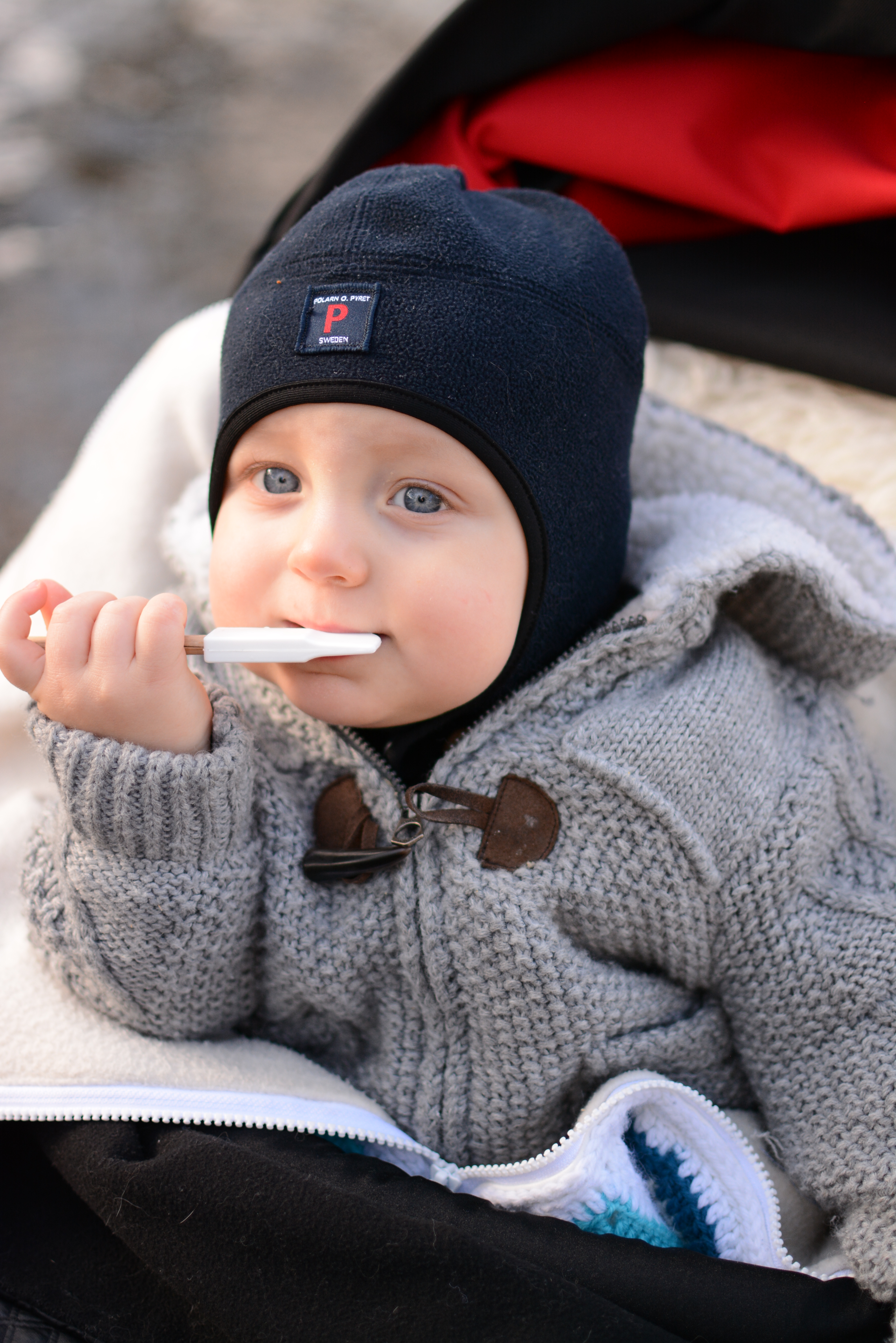 Idag tar han sig upp i soffan själv. Sedan årsskiftet ungefär har han gått med hjälp av vårt stöd – och lagom till 1-års dagen tog han sina första steg! Vilken lycka! Nu blir det alldeles underbart kul att följa utvecklingen framåt. Hans absoluta favorit är nog ändå att köra med sin gå-vagn och speciellt nu när han lärt sig styra den. Brumm brumm låter det varje gång medan spottet yr ur munnen. 🙂