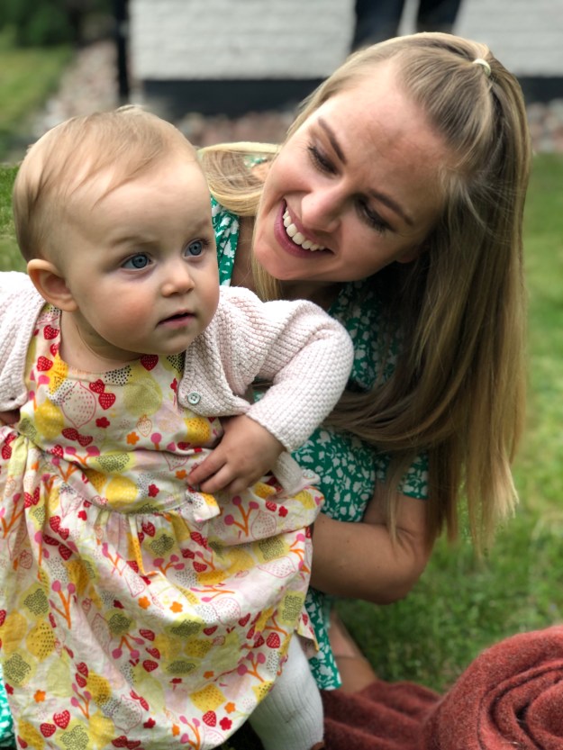 Men hon har definitivt sina griniga dagar kvar när inget tycks hjälpa…. då är det nästan bäst att jag håller mig undan men verkligheten är ju att jag är hemma med henne hela dagarna så den taktiken funkar inte. Det är som att åsynen av mig bara triggar henne att gråta. Det är konstigt hur jag både kan vara det värsta och det bästa på samma gång för henne. Så hon är fortsatt mammig i perioder, men bara hon är på humör så är hon nöjd med mina föräldrar och Daniel också. När jag är ensam hemma med henne är det helt hopplöst att försöka sig på ”hemarbete”. Hon får panik om jag ens tittar åt ett annat håll. Så det blir matlagning, tvättning och städning oftast under gråt, tyvärr. Inte jätteroligt att ha henne skrikandes och rivandes i byxbenen. Vissa grejer måste man ju bara få rådda undan, och jag är ändå snabb (och hon ser mig hela tiden). Och självklart har jag testat att låta henne sitta bredvid i sin stol och titta på el gett henne lite bunkar och vispar att leka med på köksgolvet samtidigt. El satt henne framför TV:n med barnmusik. Men näe, inget funkar på ett bra sätt. Ska jag vara helt ärlig tar hon kål på mig. Det är sinnesjukt hur missnöjd man kan vara alltså och hur mycket man kan gråta. Jättenöjd och tyst i famnen, men där kan hon ju inte sitta precis hela tiden. Någon nämnde att det kanske vänder när jag slutar amma henne…. Jag hoppas så innerligt på det.