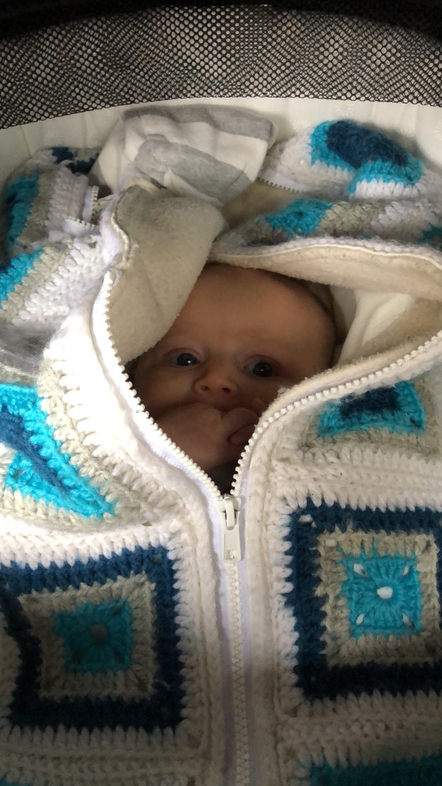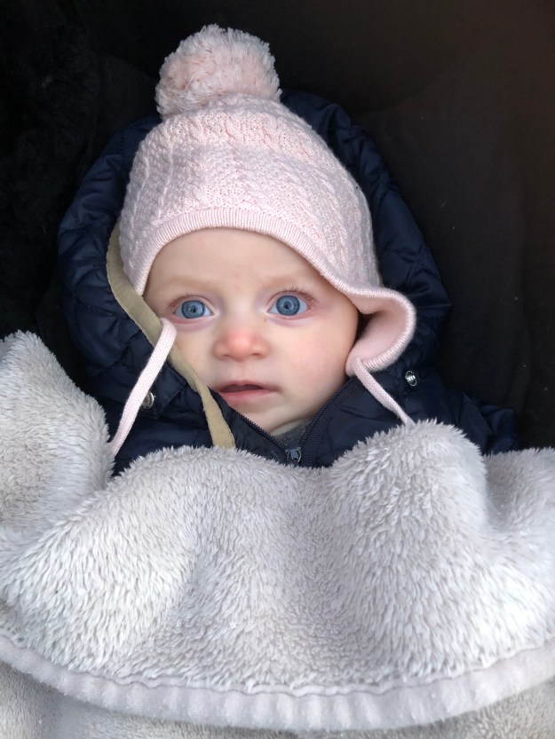 Under de första 6 månaderna var pojkarna alltid så lätta att ha med sig överallt. Det är lite andra bullar med våran donna, hon är helt enkelt lite – ska vi säga – ”besvärligare”, inte alls lika nöjd även om vi absolut har bra dagar ”på stan” med henne också. Vägrar fortsättningsvis napp, så den har vi ingen hjälp av. Meeeen, jag har alltid med mig den utifall att, ibland kan hon nämligen hålla den i munnen en stund.