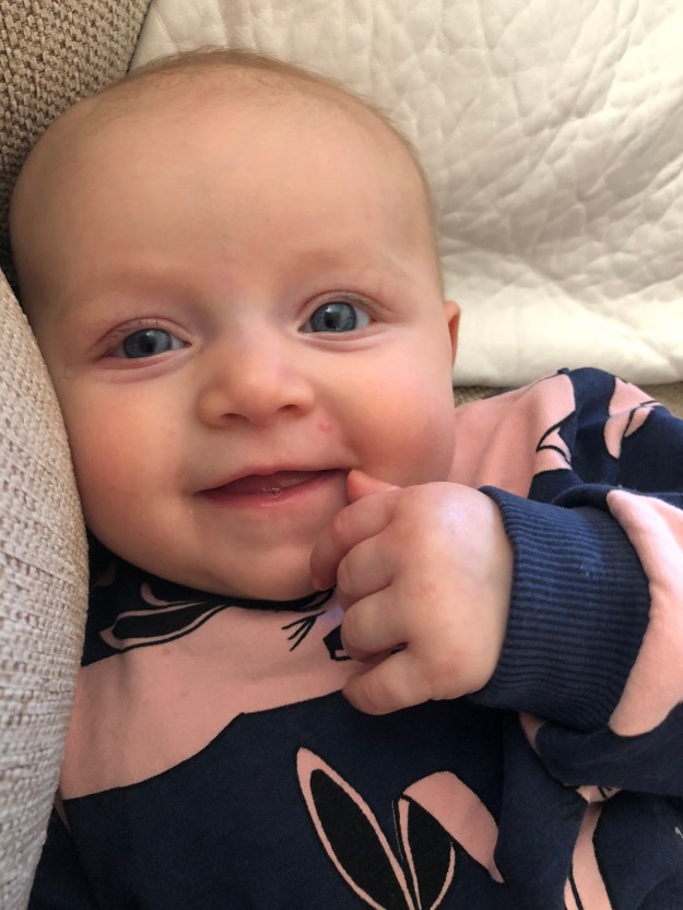 Vi börjar med sömnen tycker jag. De första tre månaderna sov den här tösen som en liten prinsessa i sitt näste bredvid mig om nätterna, och väckte mig för lite mjölk 1-2 gånger per natt. Otrolig lyx. Den har slutat. De tre senaste månaderna har hon väckt mig i regel minst 4 ggr per natt om inte upp till 6 ggr ibland. Och vi vet ju alla vad för lite sömn gör med oss. Man blir trött och lättretlig….. Dagtid sover hon inte alltför regelbundet, det är lite ”hej baberiba” med det där. Men jag skulle säga att vi snittar 30-90 min på förmiddagen (oftast är jag ute på en promenad med henne då), 30-60 min 2-3 ggr resten av dagen men inte alltid på samma tider. Lättast är det att amma och dra ut på vagnpromenad, då sover hon bäst. Nu kör jag på sittdelen till vagnen och där är hon lättare att hålla nöjd eftersom man kan variera ryggstödets lägen. På kvällen går hon och lägger sig när jag går och lägger mig, vilken blir runt 21.30-22. Vi brukar inte orka underhålla längre än så. Och på morgonen vaknar hon mellan 7-9.