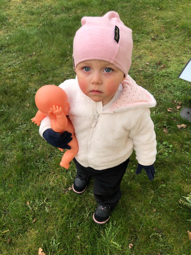 I övrigt älskar hon att gunga, leka i sandlådan, plocka med sitt kök, vårda sina dockor, dansa och att titta på paddan. Om hon har för mycket skärmtid? Jajjebox. Men man gör vad man kan för att överleva småbarnsåren och lovar sig själv varje kväll att gömma den dagen efter….