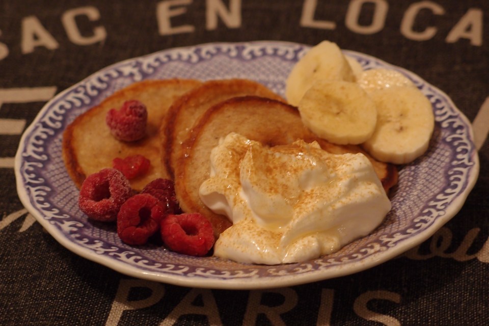 Polentapannkaka med banan & blåbär