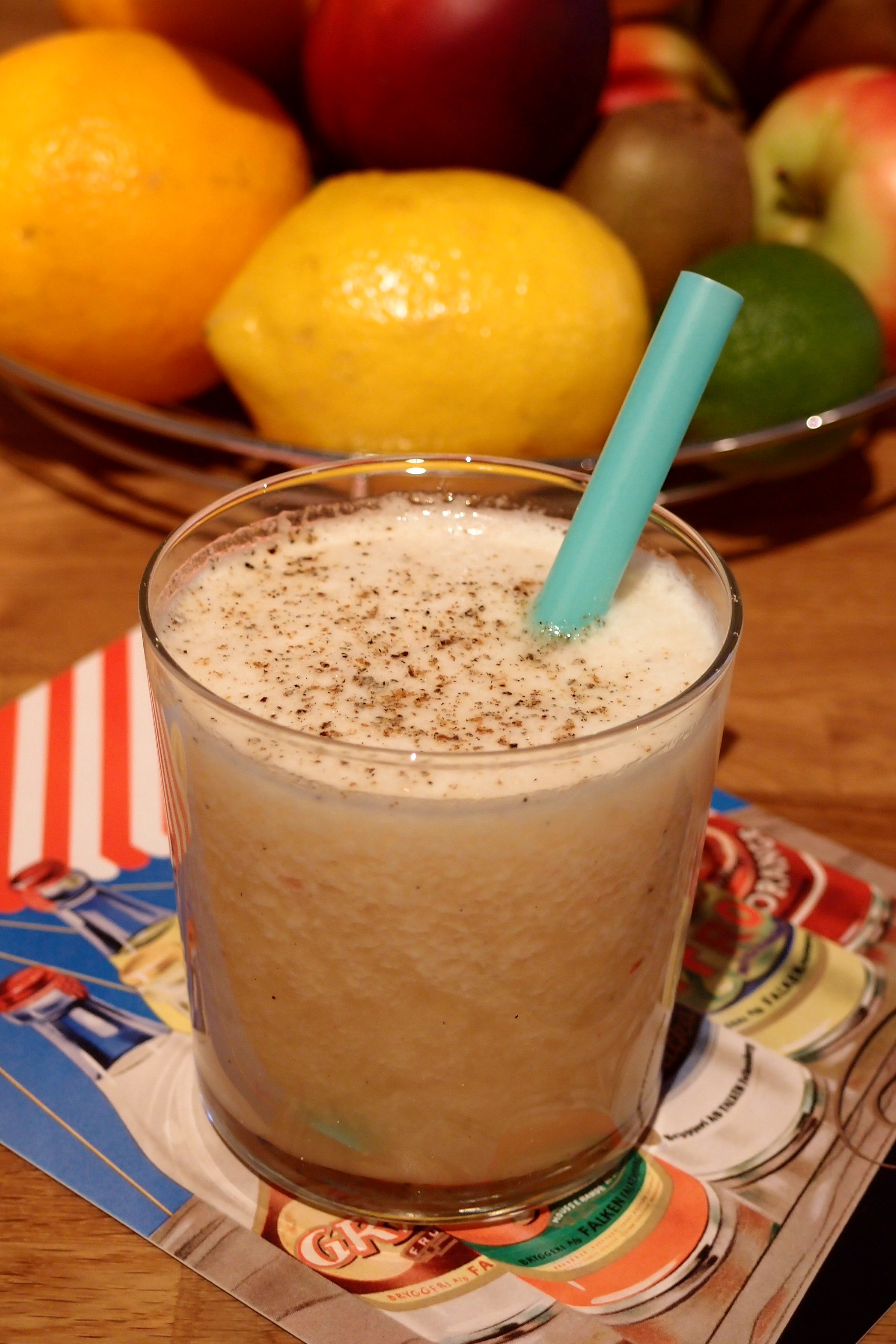 Mixa samtliga ingredienser till en slät smoothie. Servera genast!