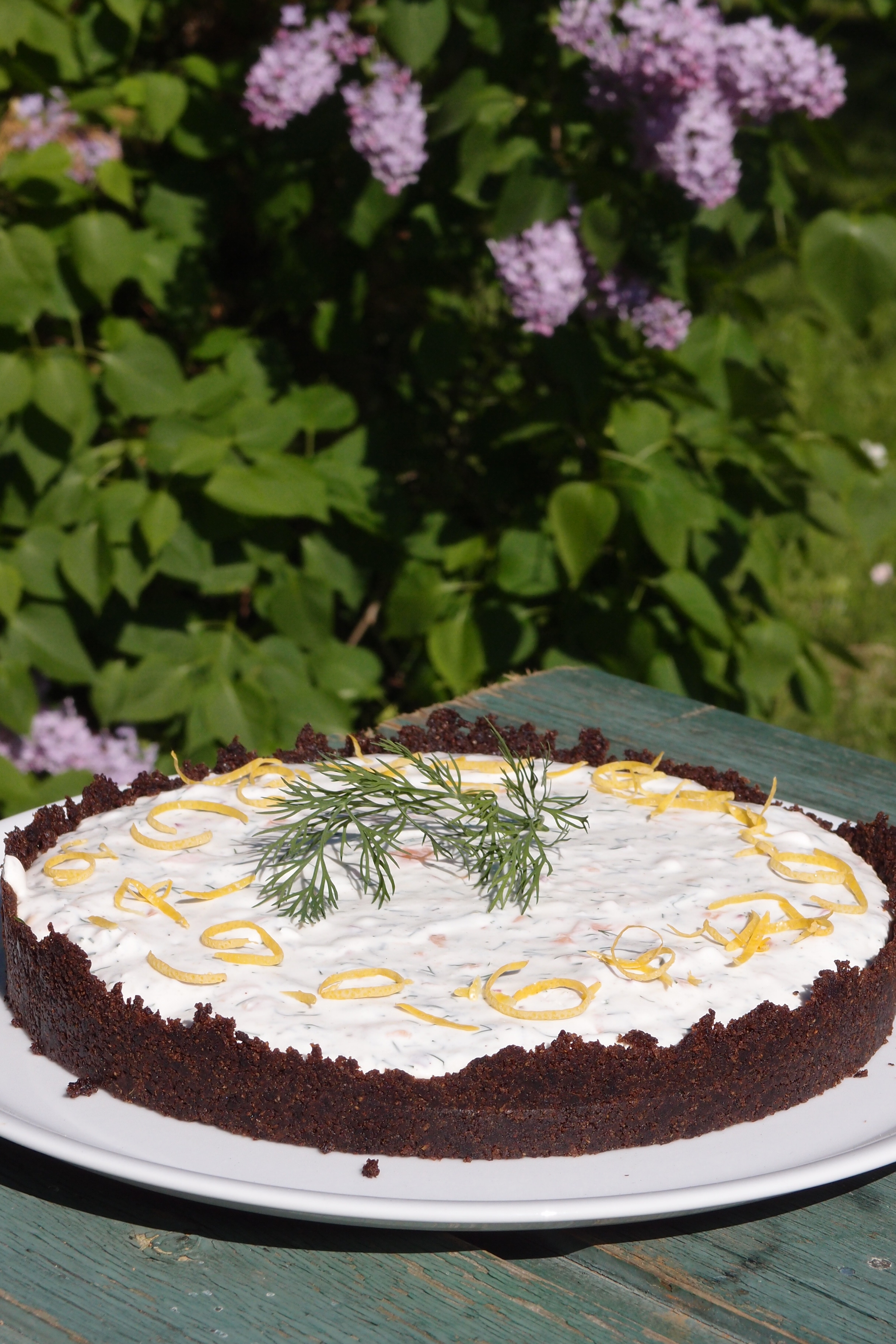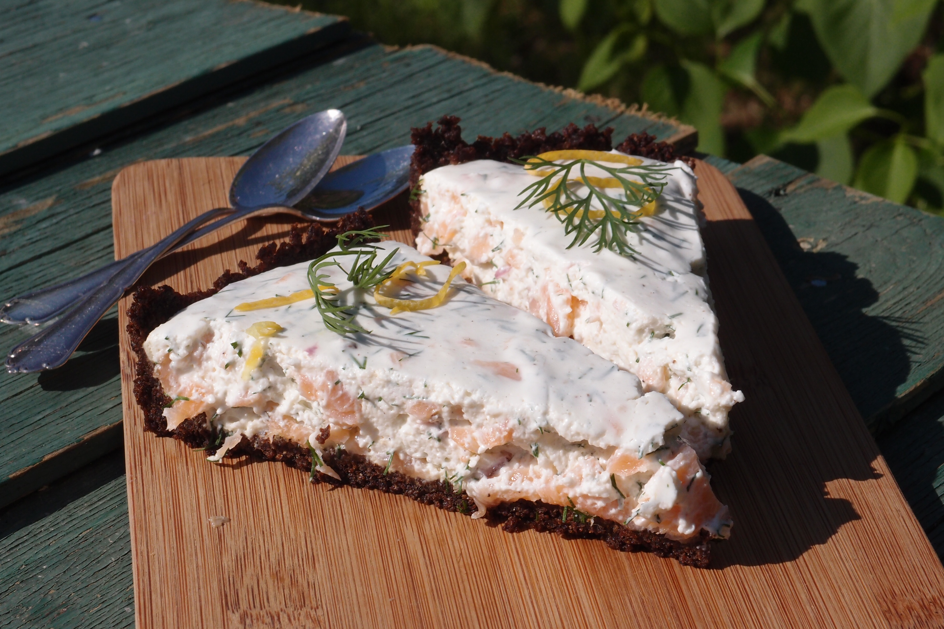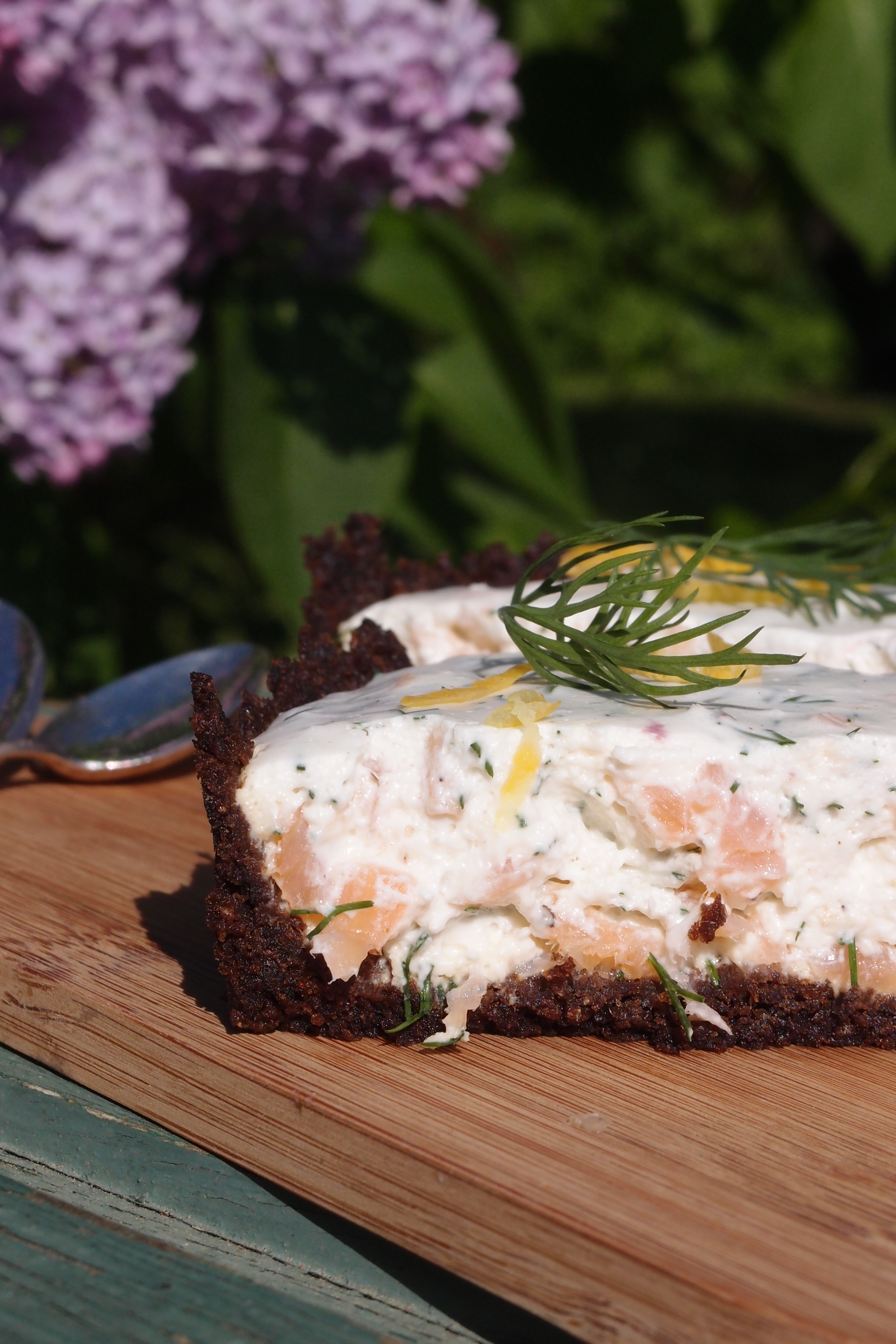 Åländska produkter som svartbröd, smör och naturell yoghurt bidrar till att den här krämiga laxcheesecaken smakar extra gott. Ingen ugn krävs, bara 4 timmar i kylen – enkelt fixad även ute på stugan alltså och perfekt att förbereda dagen innan.