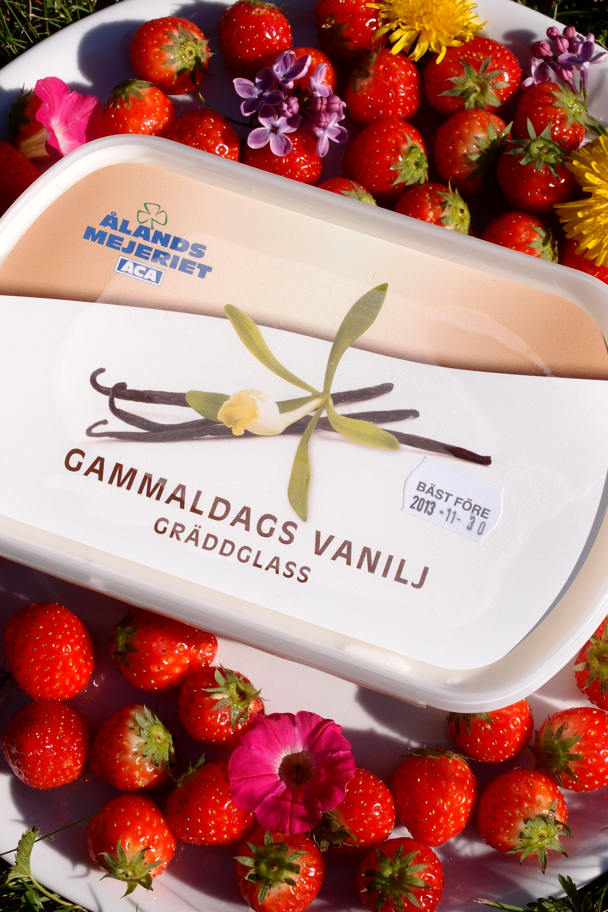Hemkokt vaniljsås, vispad Ålands grädde eller Gammaldags vaniljgräddglass från Ålandsmejeriet