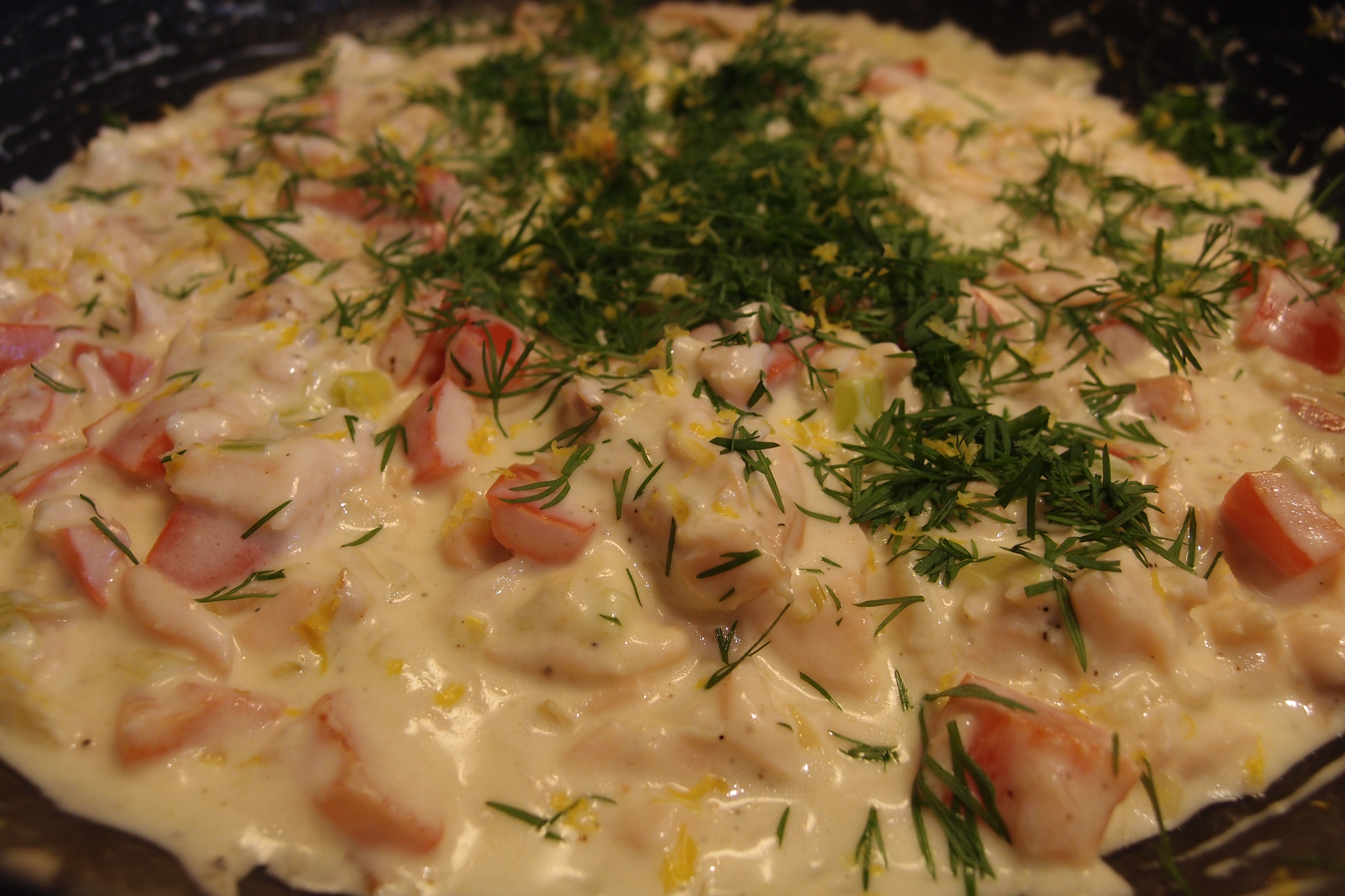 När potatis samsas i soppor tillsammans med rotfrukter så tycker jag mest den blir överflödig och smaklös, så jag har helt enkelt hoppat över den idag. Kallrökt lax är inget måste i soppan, men det ger en rökig och salt smak som jag gillar. Räkor är säkert gott och vackert att tillsätta (jag tog helt enkelt vad jag hade hemma). Tänk på att soppan nästan ska vara klar innan fisken läggs ner, den ska inte kokas utan blir snabbt klar av eftervärmen från soppan.