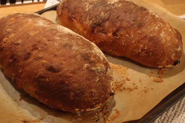 Jag bakade ut degen till två bröd, utan att trycka luften ur degen. Jag vek ihop den (typ som en rulltårta) för att få lite spänning i degen. Det resulterade i två höga och fina bröd.