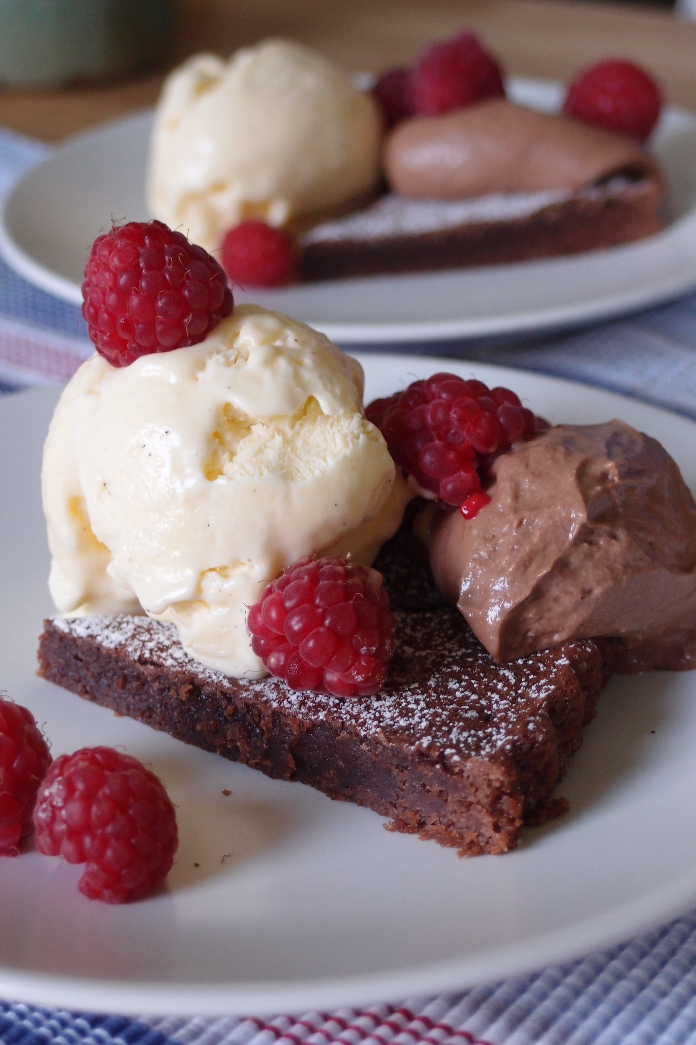 Först ut en lyxig, hög och helt ljuvlig kladdkaka. Receptet är inspirerat från den mysiga bloggen http://www.fikastunder.se men min variant innehåller även farinsocker, mer salt och mer av det goda; choklad!