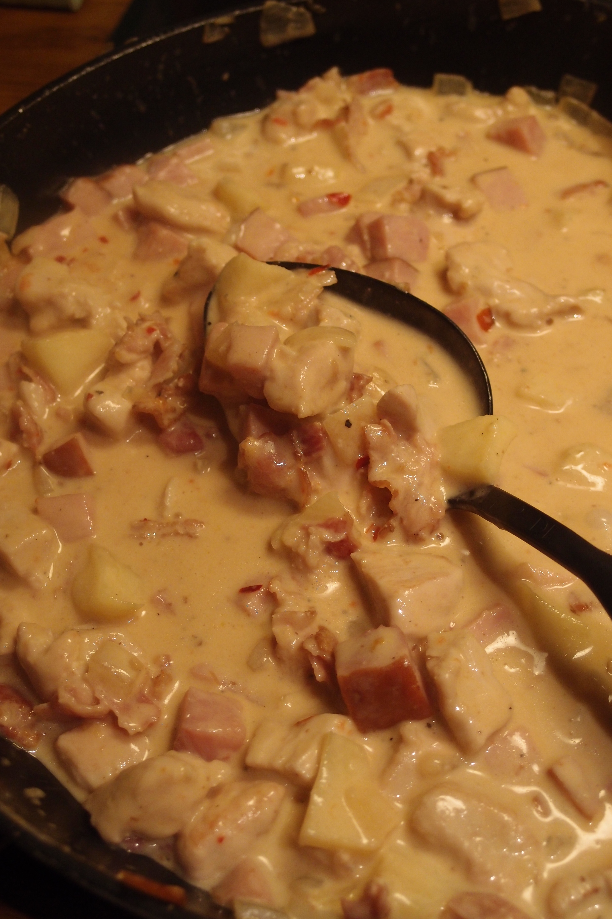 I vanliga fall slänger jag in det här i ugnen men för att slippa värma den i onödan lät jag allt gå klart i pannan. Och det funkade ju finfint, förutom att färgen på ytan blev lite lidande men det störde mig inte alls.