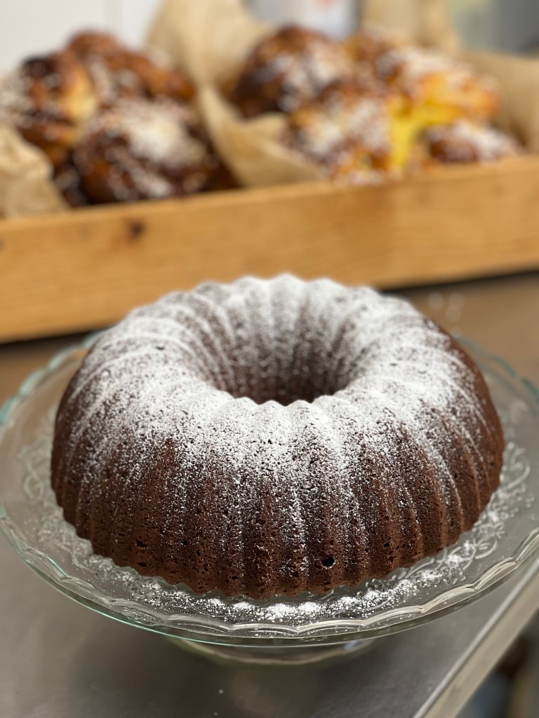 Fyll formen och grädda i mitten/nedre delan av ugnen. Hur länge det tar beror på vilken form du valt. I Nordic Wares formar kan det gå på 25 minuter medan det kan ta upp till 45-50 min i en annan sockerkaksform. Du märker att kakan är klar när den släpper kanterna och känns fast på ytan samt att den provsticka kommer upp fuktig/torr. Min kaka är klar på 35 min i Nordic Ware.