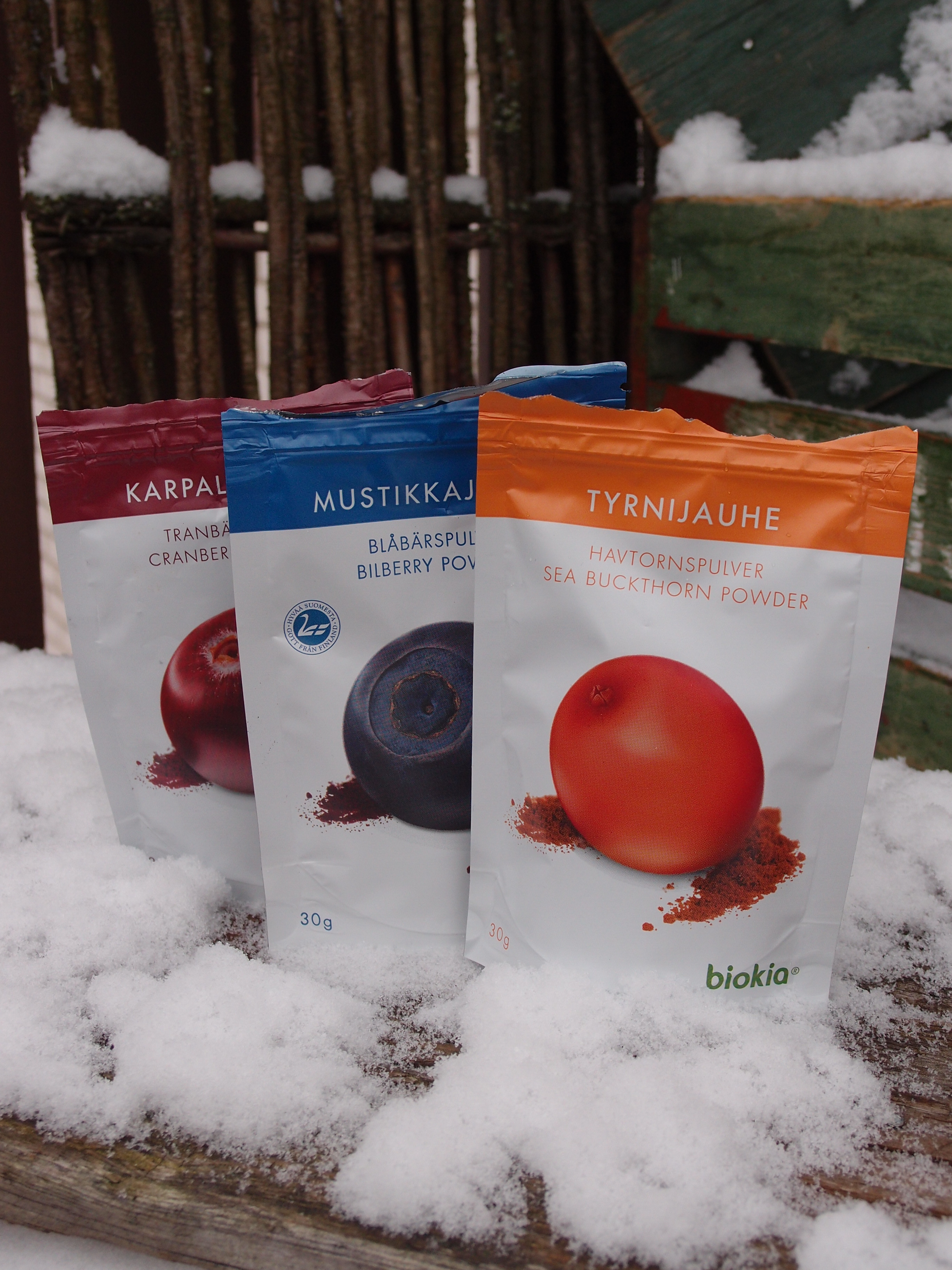 Blev så glad när jag hittade dessa rena bärpulver i mataffären på Åland (Kantarellen). Fria från tillsatser. Till 30 g blåbärspulver har man använt 5 dl färska finska blåbär. Koncentrerat med andra ord! Perfekt att färga och smaksätta med, jag pudrar dem över gröt, yoghurt, müsliskålen och smaksätter smoothies och puddingar. I frosting fungerar de förresten utmärkt! Sugen på att prova dem även i övrig bakning eller i hemlagat godis. (Vågar inte säga vad de kostar nu för det minns jag inte men runt 4 euro ungefär).