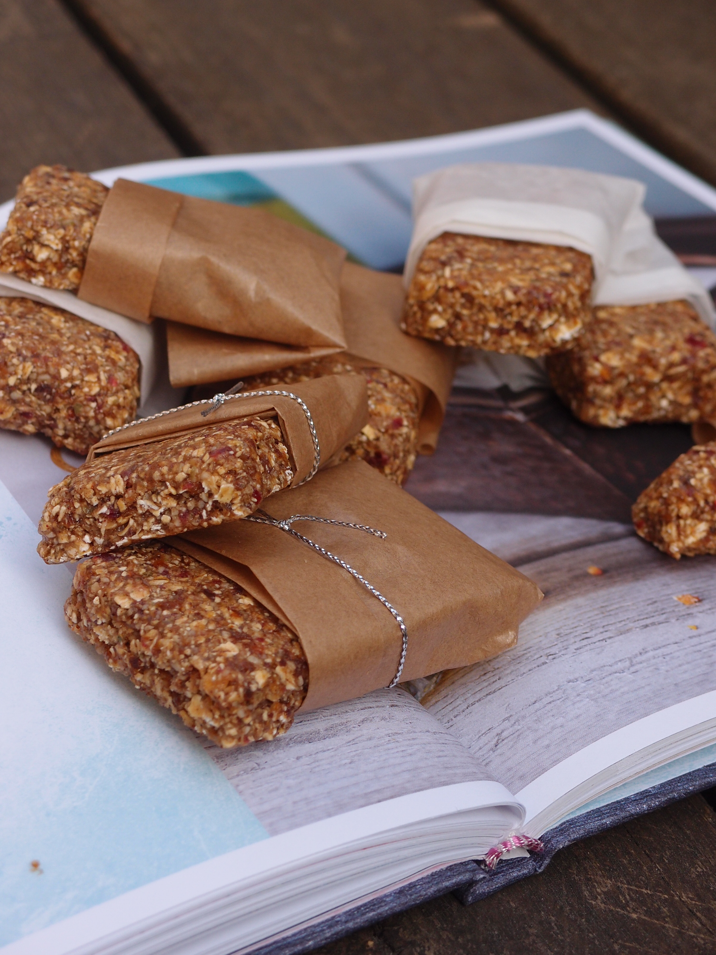 Jag har nästan alltid lite nyttiga bars eller Vasa Sandwich i skötväskan som backup-mellanmål. Man vet aldrig när hungern slår till och därmed också humörsvängningar för min del. Men nyttiga bars är ganska dyra att köpa så nu har jag gjort egna raw-bars. Väldigt goda, så här kommer receptet som är från boken Smarta Sötsaker utan socker, gluten och mjölk av Ulrika Hoffer.
