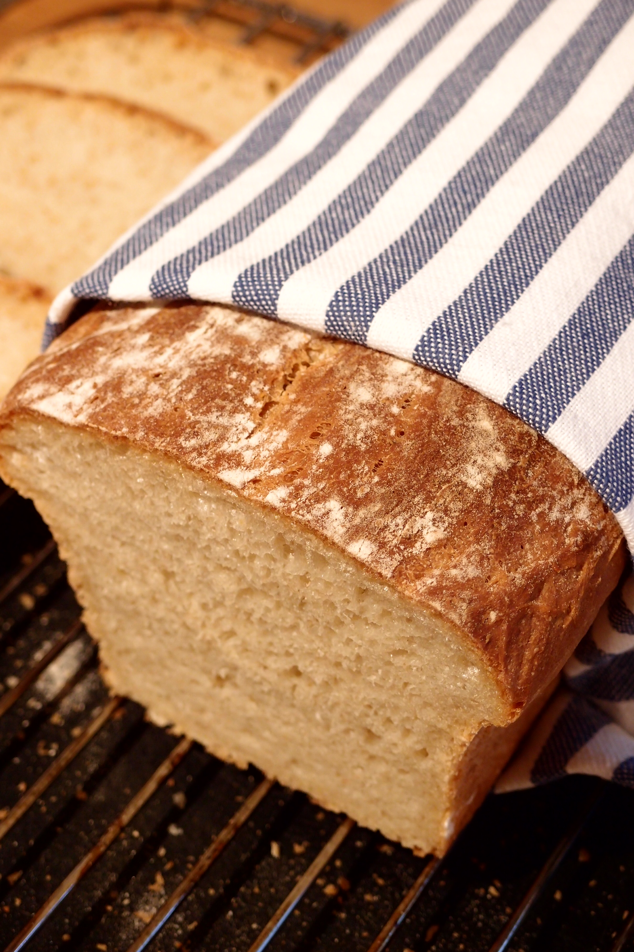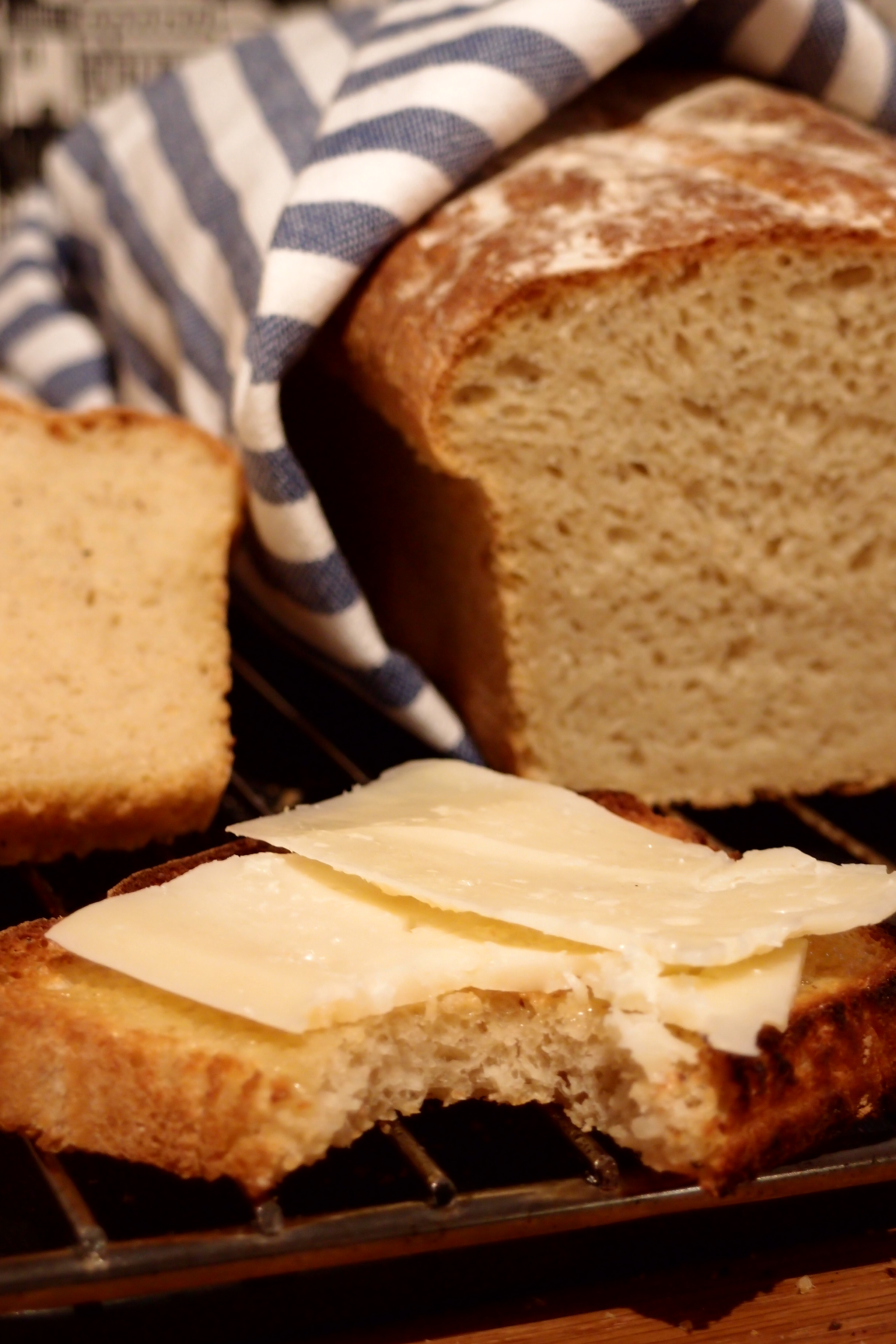 Jag räknade med att få ut två limpor men i slutändan blev det ett högt bröd och det är jag glad för, för vem vill ha en liten macka. Det är inte bara luftigt utan samtidigt ett lagom tungt och härligt tuggigt bröd som också skulle fungera utmärkt till att suga upp god sås från ett långkok. Tänk att doppa det i lite olivolja och flingsalt, som på restaurang, mums! Förstås helt underbart att rosta också.