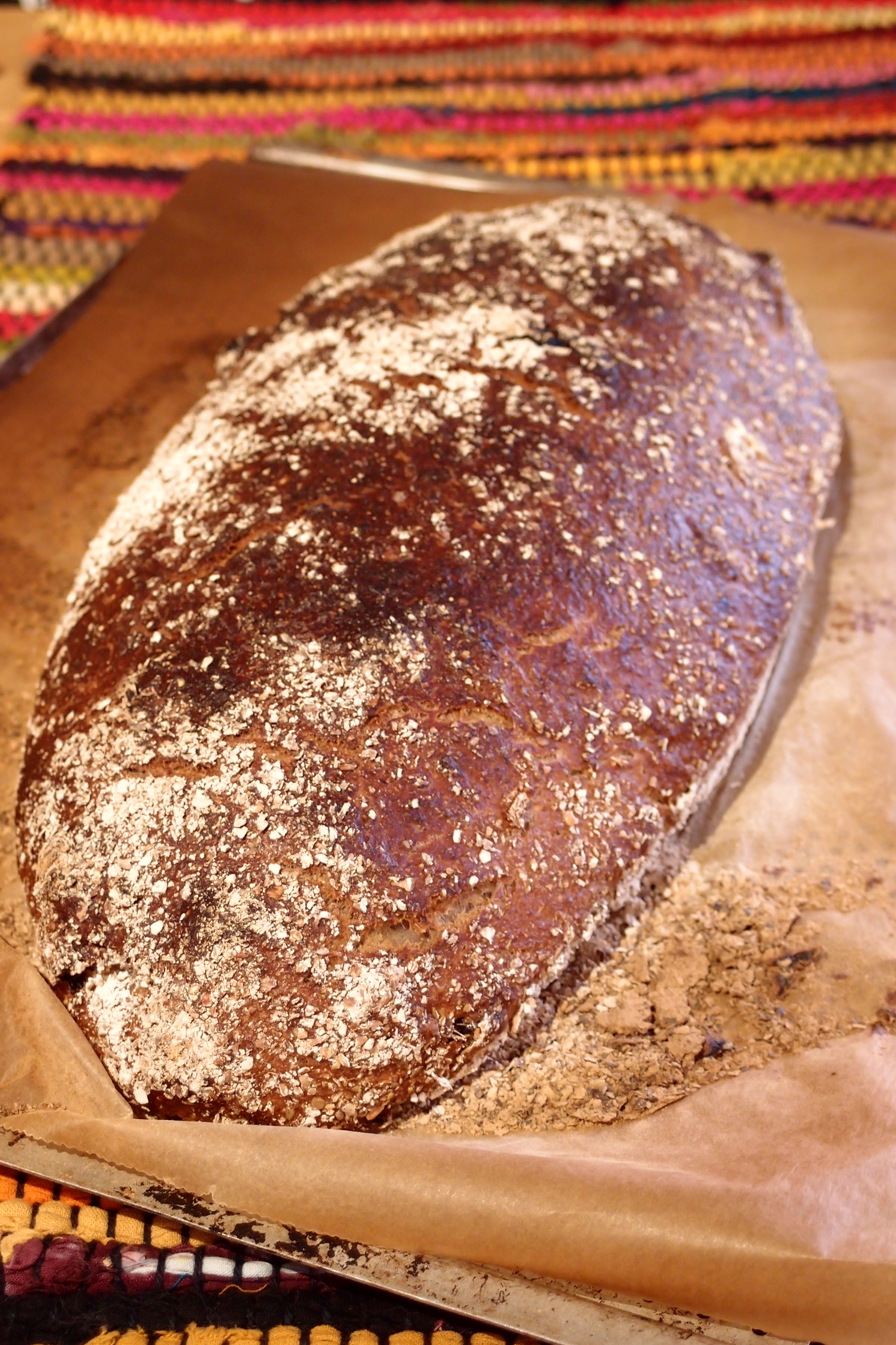 Pensla brödet med espresso eller vatten, en gång före och en gång under grädningen. Grädda brödet i mitten av ugnen i ca 30 minuter. Innertemperaturen ska bli 98°. Låt svalna och skär i skivor. Går utmärkt att frysa.