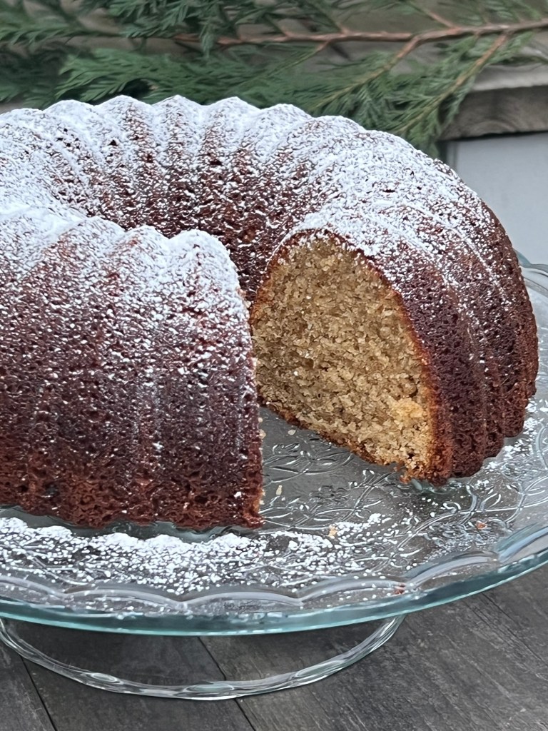 Saftig och alldeles ljuvlig. Vill verkligen slå ett slag för att baka i Nordic Wares formar för gräddningen går på ca 30 minuter och kakan lossnar alltid perfekt från formen.